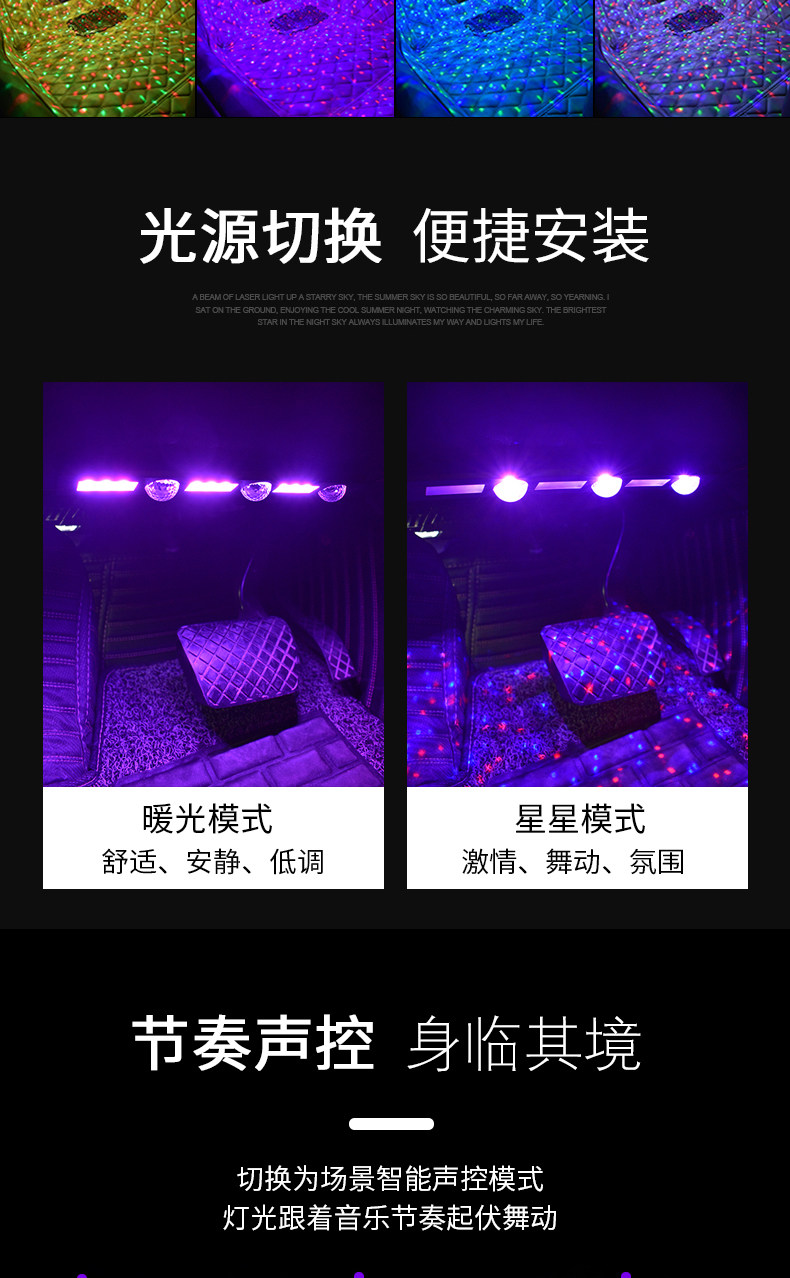 Звездное небо, модифицированный беспроводной светодиодный светильник, музыкальный ритм-фонарь