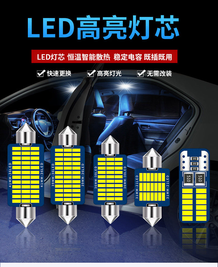 13 кусочков соглашения: 13 штук:4 лампа для чтения, 4 дверные лампы, 2 лампа макияжа, 1 багажник, два света номерных знаков
