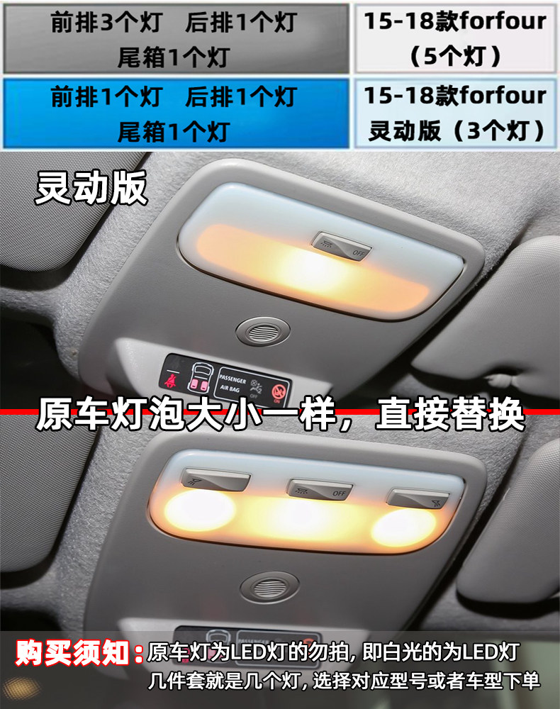 Применимо 15-18 Smart для 16 Top Lights 17 Interior Smart Modified Lod Hight Lights