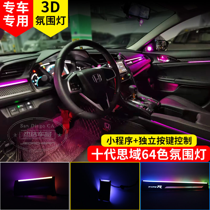 Подходит для Honda Ten Generation Civic Atmosphere Lights Special Dragon Scale Замените 3D -внутренний автомобиль внутренний свет 64 Цвет