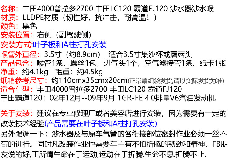 03-09 Domineering FJ120 2700 wader Prado 4000 LC120 модификация воздухозаборника для бездорожья