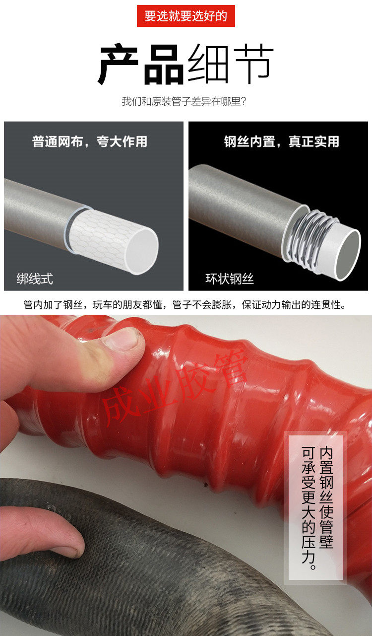 После десятилетий опыта в производстве силиконовых трубок мы обнаружили, что, когда все модели вне дороги были в основном покрыты. Когда дроссельная заслонка увеличивалась, турбинная трубка исходного автомобиля будет расширяться, что привело к блокированию потребления и власти не был прямым.