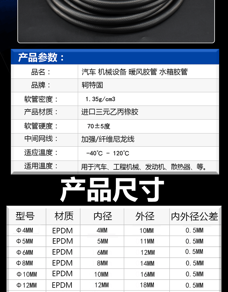 Автомобильный двигатель резервуар для воды с высоким теплым фен -водопроводной трубкой против -безрешительный раствор Тернарный резиновый трубопровод EPDM 16 мм