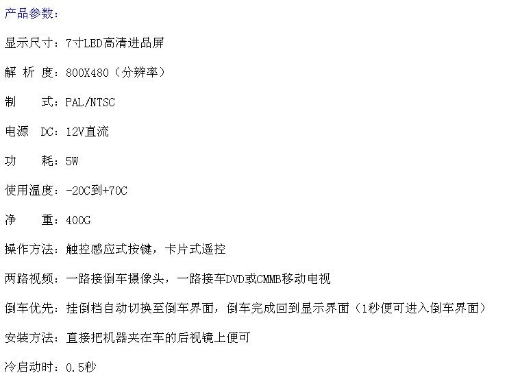 Импортированный оригинальный чип используется, изображение ясное, стабильное, а эффект ночного видения хорош. Импортируемый оригинальный объектив используется.С помощью электронной линии логотипа вы можете отобразить шкалы на дисплее и увидеть приблизительное расстояние между задним объектом от задней части автомобиля.
