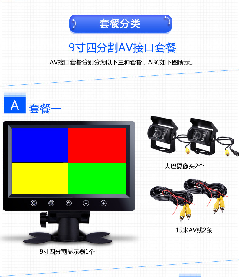 - Пакет 3 (9 -INCH Четыре экрана того же экрана AV Interface+4 AV Bus+4 15 -метровые AV Lines)