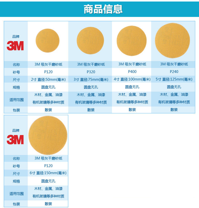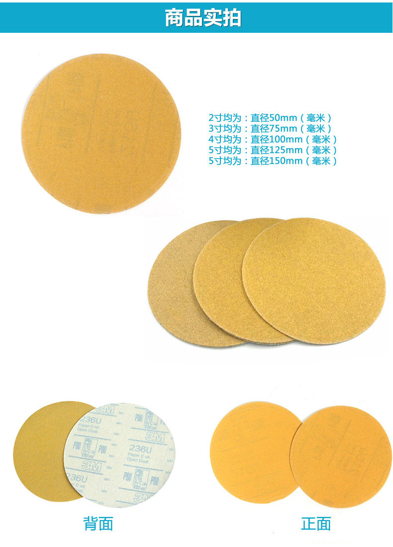 3M Диск диска, зола, поглощающая сухость матовой бумаги 2 -инх/3 дюйма/4 дюйма/5 -дюймовый/6 дюймов полированная наждачная бумага 236U 236U