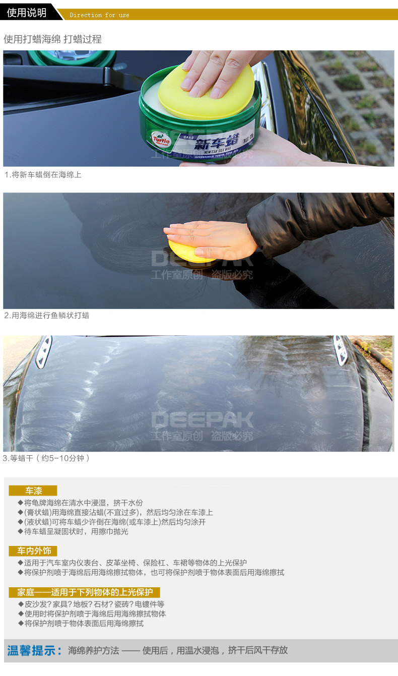 Черепачная марка автомобиль восковой губчатый блок восковой хлопковой хрустальный хрустальный инструмент ручной резиновой полировки для ручной очистки автомобиля