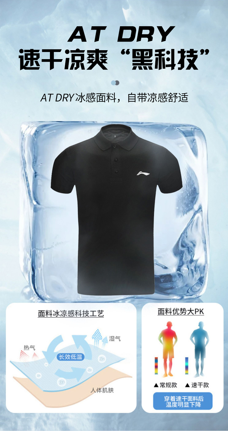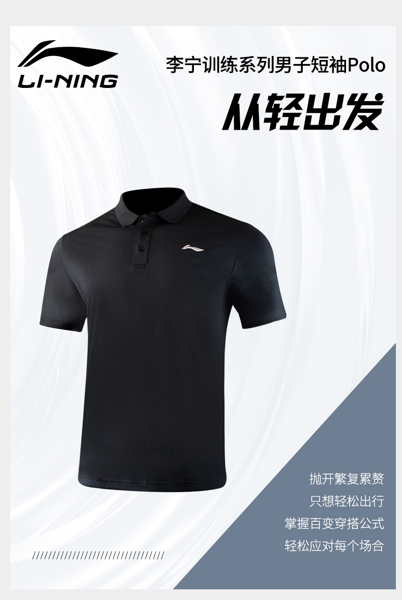 Li Ning, спортивная футболка polo, мужская летняя быстросохнущая рубашка для спортзала