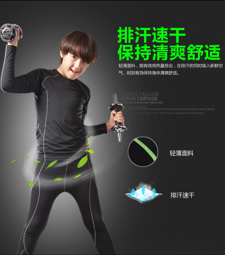 Демисезонный детский быстросохнущий баскетбольный футбольный базовый комплект для тренировок для бадминтона для спортзала, в обтяжку, для бега