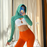 Короткий лонгслив для спортзала, сексуальная одежда для йоги, толстовка с капюшоном, популярно в интернете, для бега