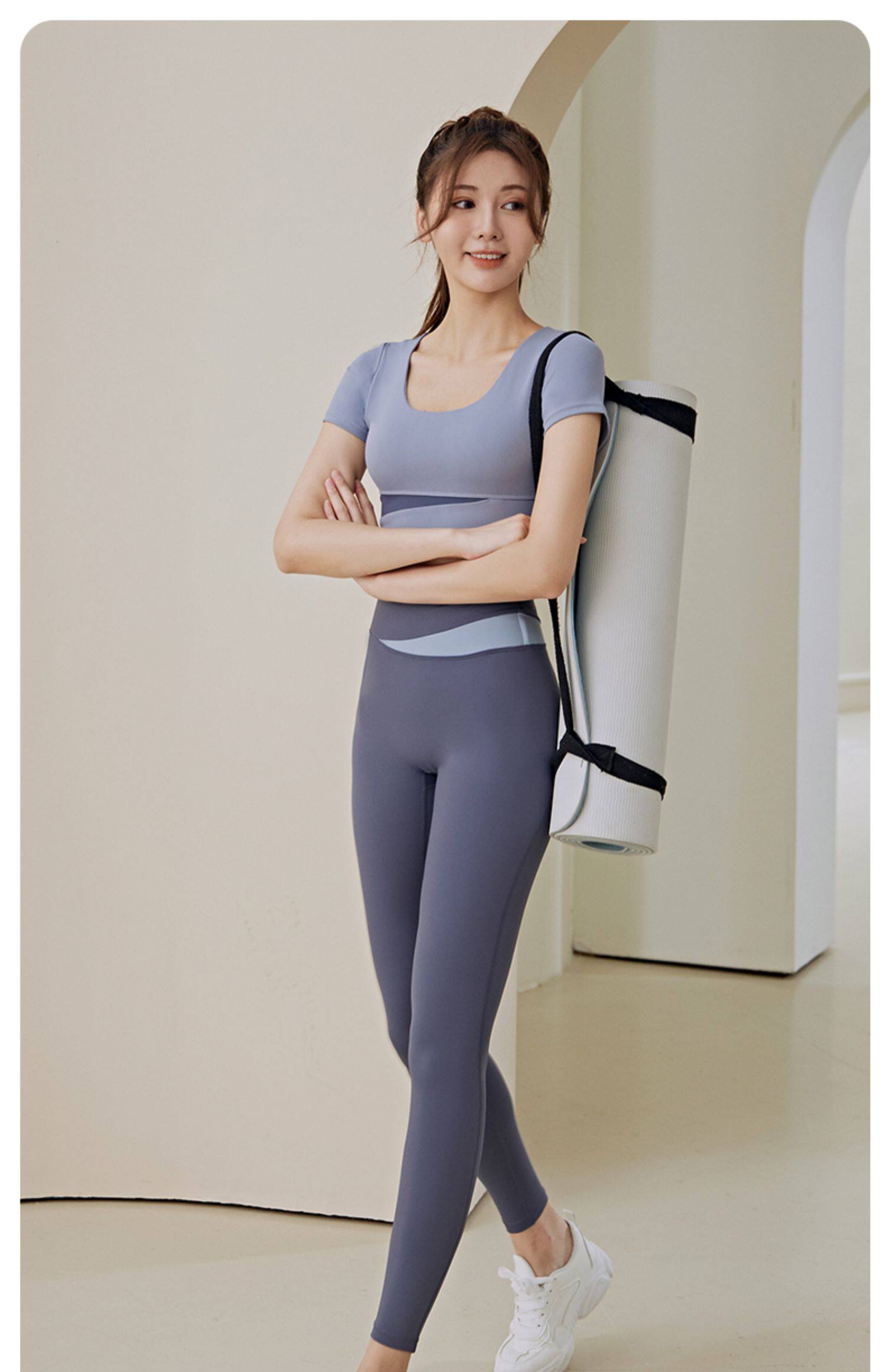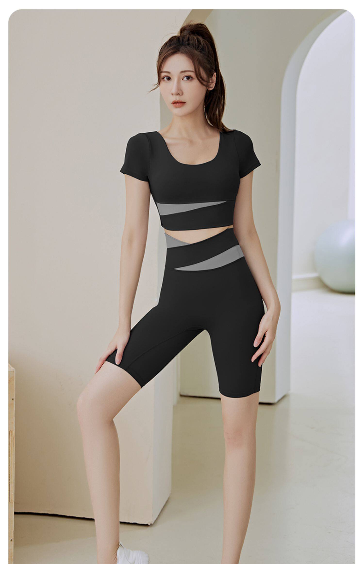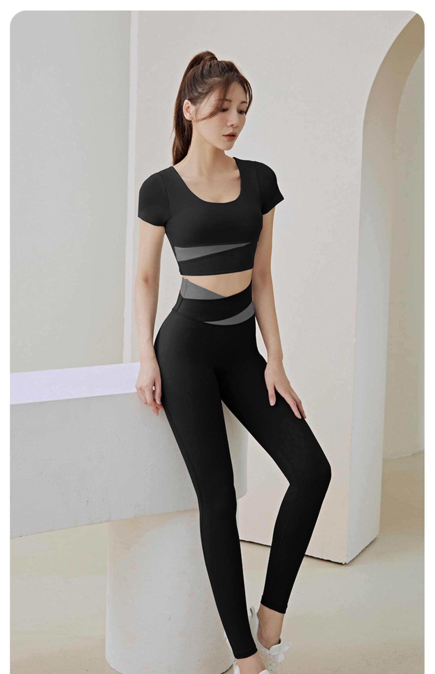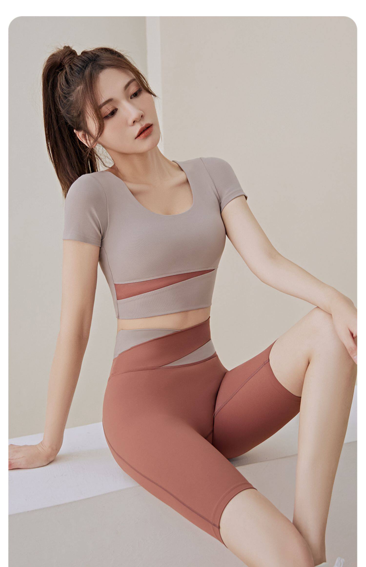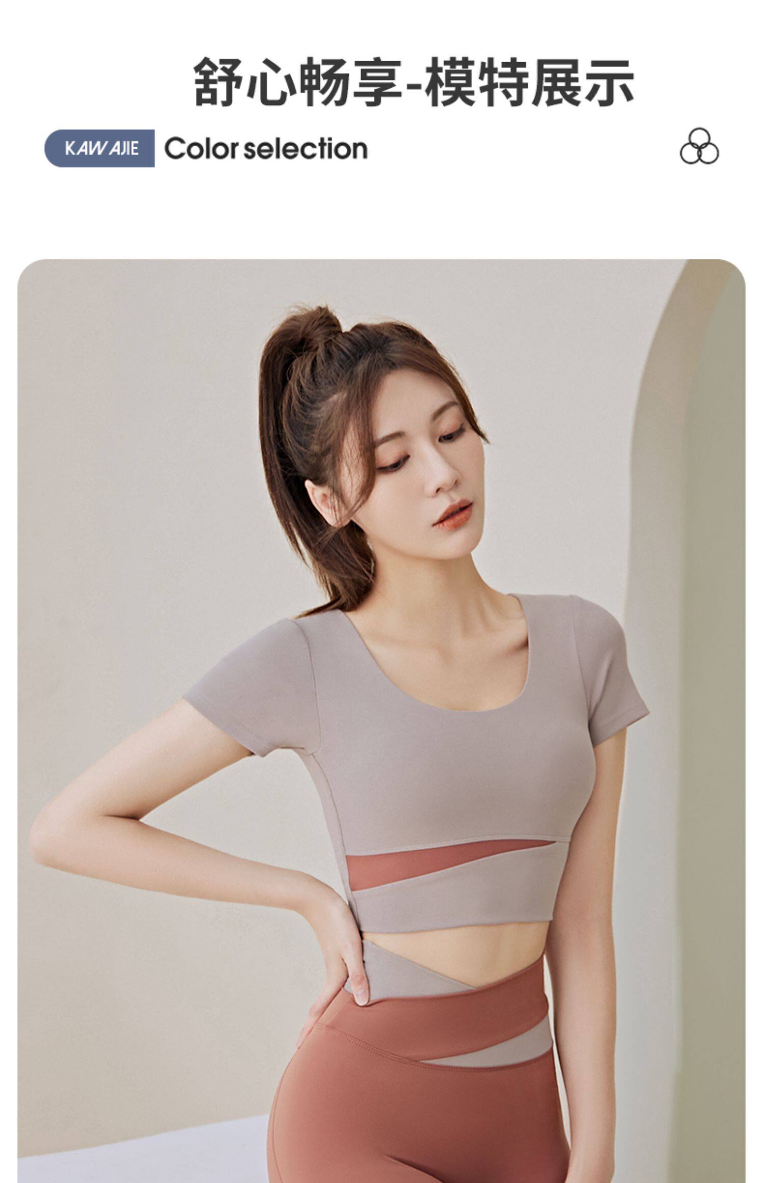 Одежда для йоги, быстросохнущий топ с чашечками для спортзала, летний спортивный костюм, для бега, короткий рукав, в обтяжку