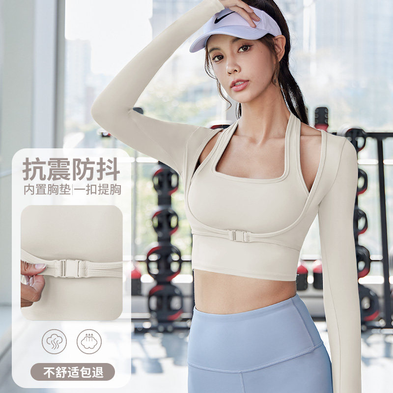 Одежда для йоги, топ с чашечками, быстросохнущий лонгслив для спортзала, спортивный костюм, для бега
