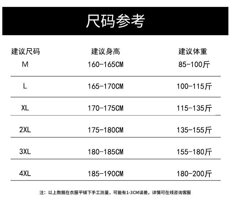 | Размер: | M [Предложение 85-100 Catties], L [Предложение 100-115 Catties], XL [Предложить вес 115-135 Catties], 2xl [предложение весит 135-155 котли, 3xl [предложение весит 155-180 котливых]], 4xl [предложение весит 180-200 котли |