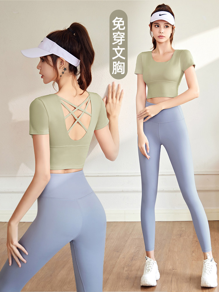 Одежда для йоги, комплект для тренировок, спортивный быстросохнущий жилет для спортзала, для бега, короткий рукав