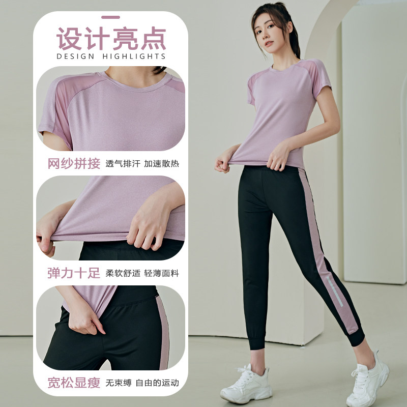 Быстросохнущий летний комплект для йоги для тренировок для спортзала, короткий рукав, 2023