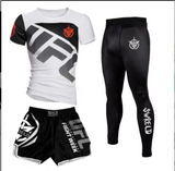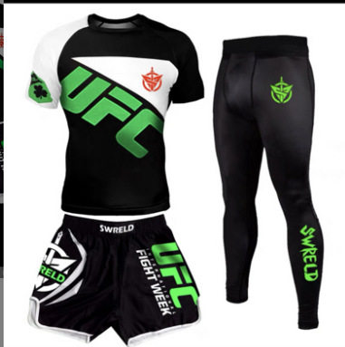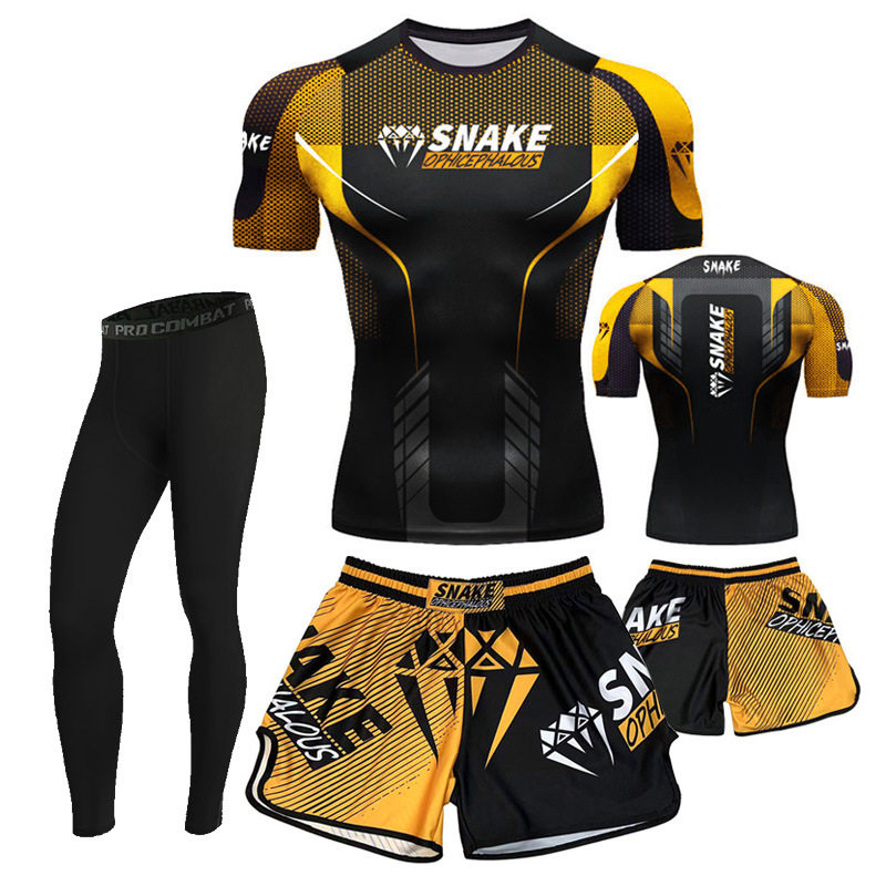 Боксерский быстросохнущий комплект для тренировок, шорты для спортзала, в обтяжку, короткий рукав