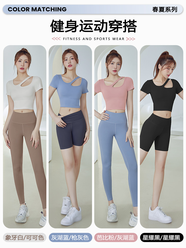 Летняя быстросохнущая одежда для йоги, спортивный комплект для спортзала, короткий рукав, большой размер, для бега