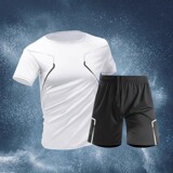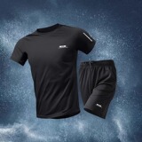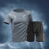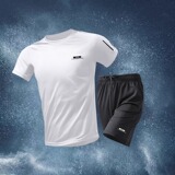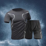Приятный телу быстросохнущий спортивный костюм для спортзала, летние шелковые шорты, баскетбольная футбольная футболка, короткий рукав, для бега