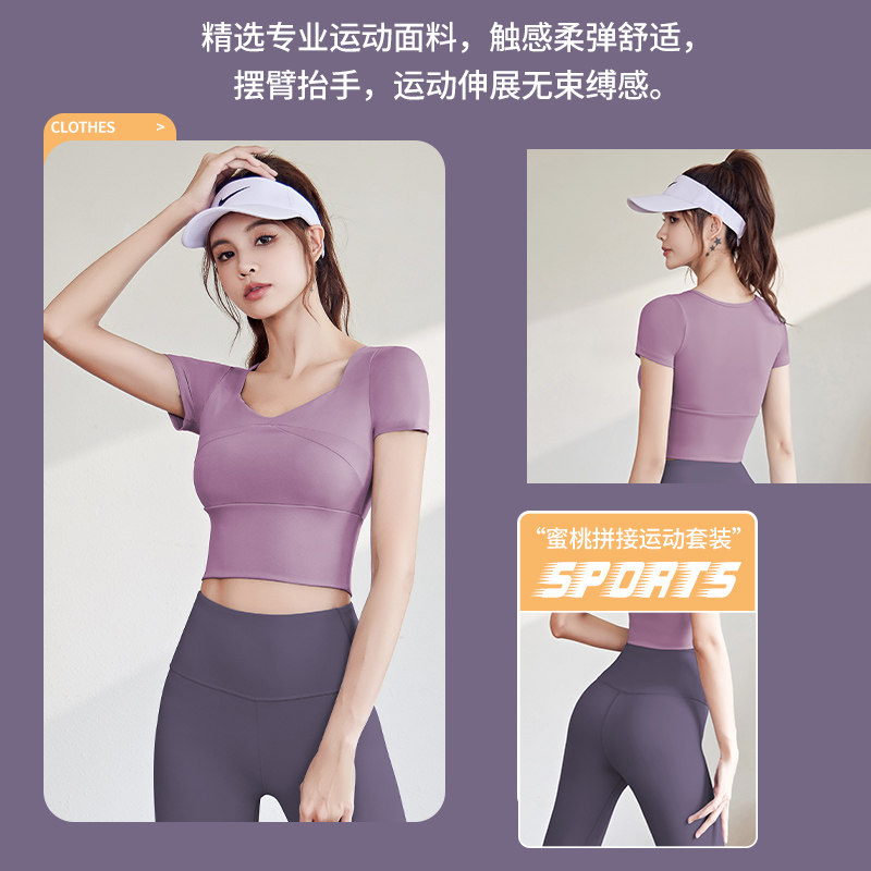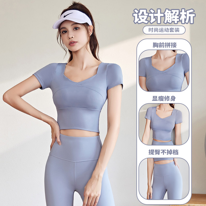 Одежда для йоги, летний спортивный комплект для тренировок для спортзала, короткий рукав, для бега