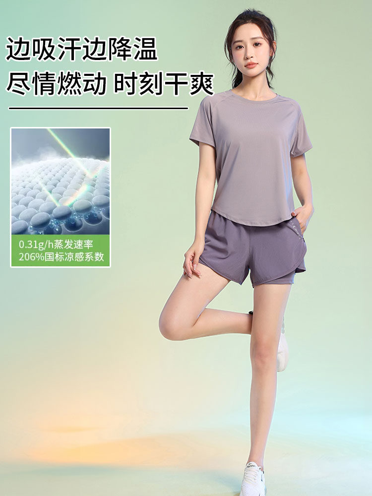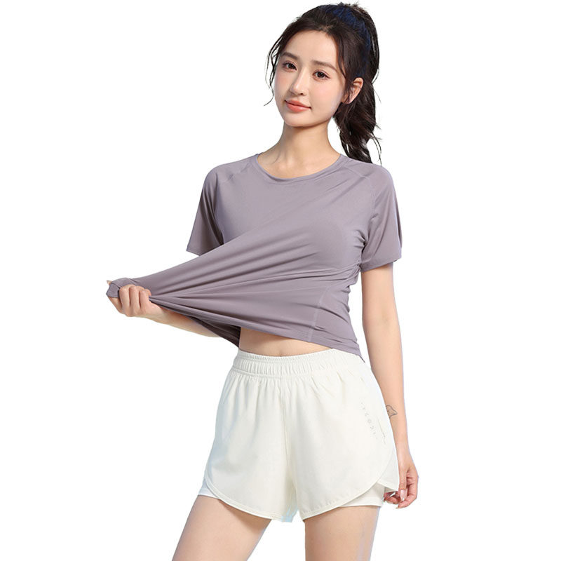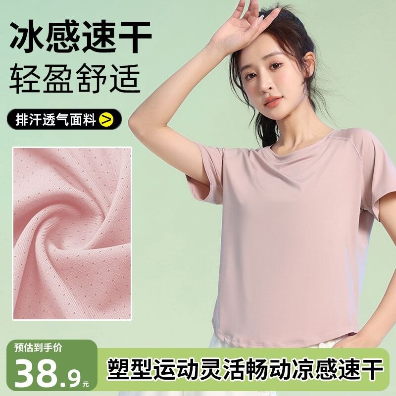Быстросохнущая спортивная дышащая одежда для йоги для спортзала, футболка, короткий рукав, облегающий крой, для бега