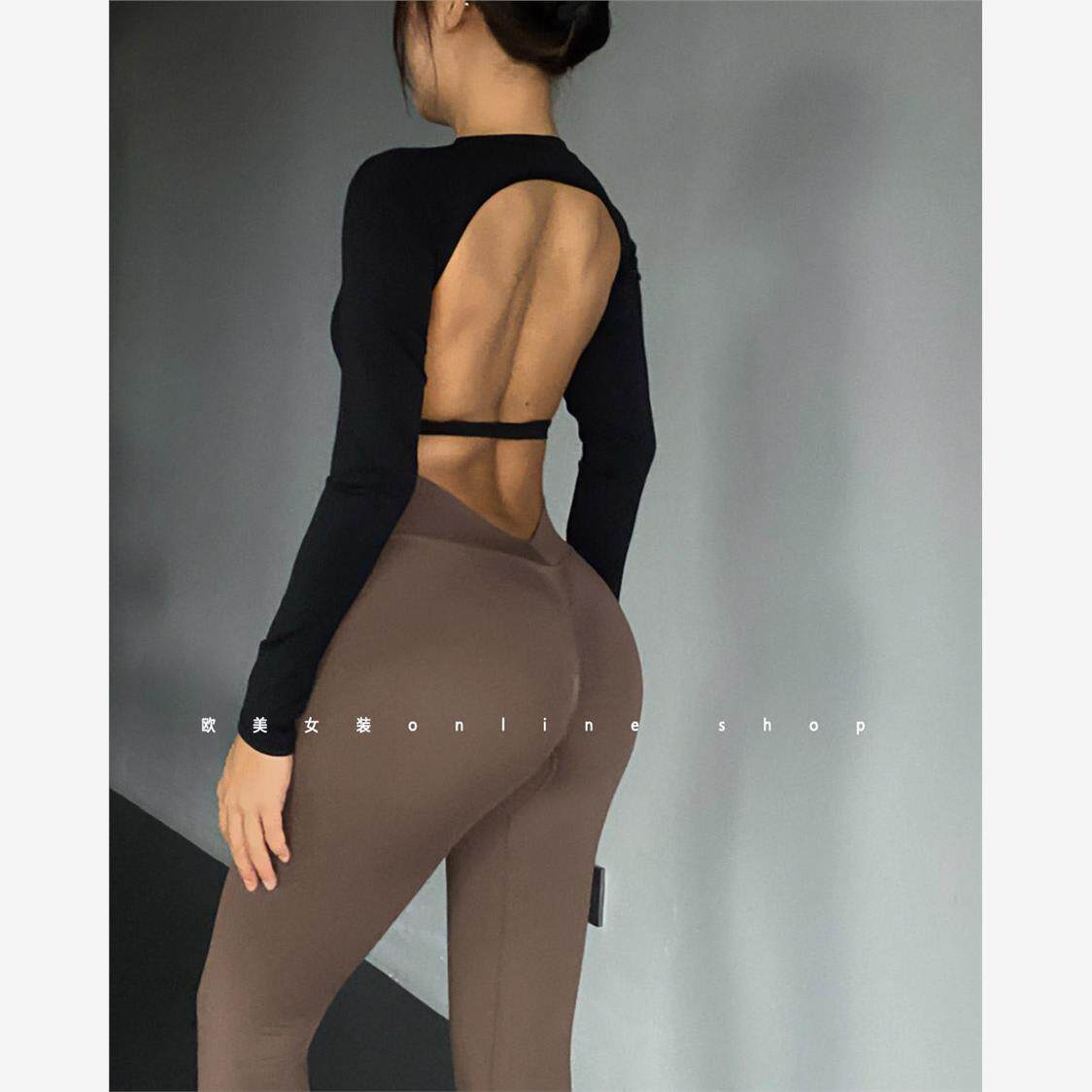 Сексуальная спортивная быстросохнущая одежда для йоги, лонгслив для спортзала, футболка, топ с чашечками, европейский стиль, с открытой спиной