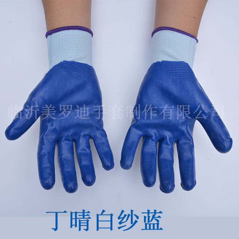 Моротовые перчатки Qingluo, устойчивые к износу, анти -скользи, белая жевательная резинка, белая марля -синяя цинго