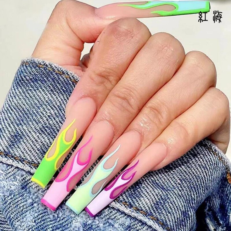 Длинные наклейки для ногтей, летние накладные ногти, коллекция 2023, готовый продукт