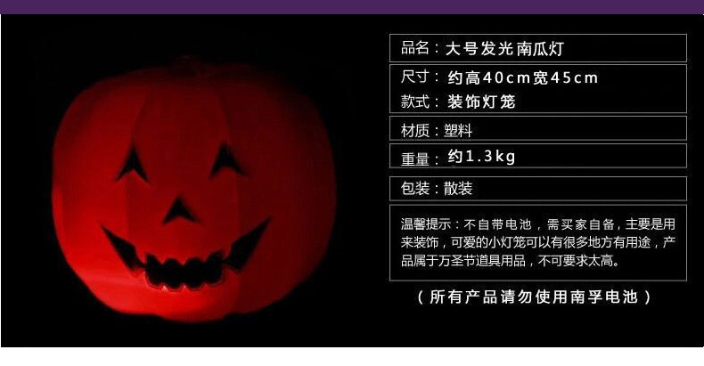 Пластиковый большой тыквенный фонарь, xэллоуин