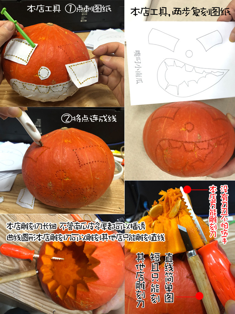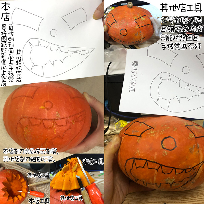 Наборы вырезов тыквы 5 штук пакетов и 10 кусочков рисунков. Пожалуйста, посмотрите на использование каждого инструмента!