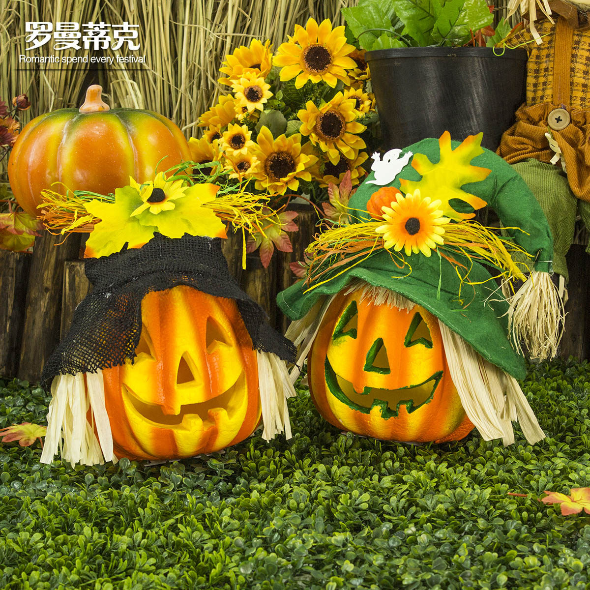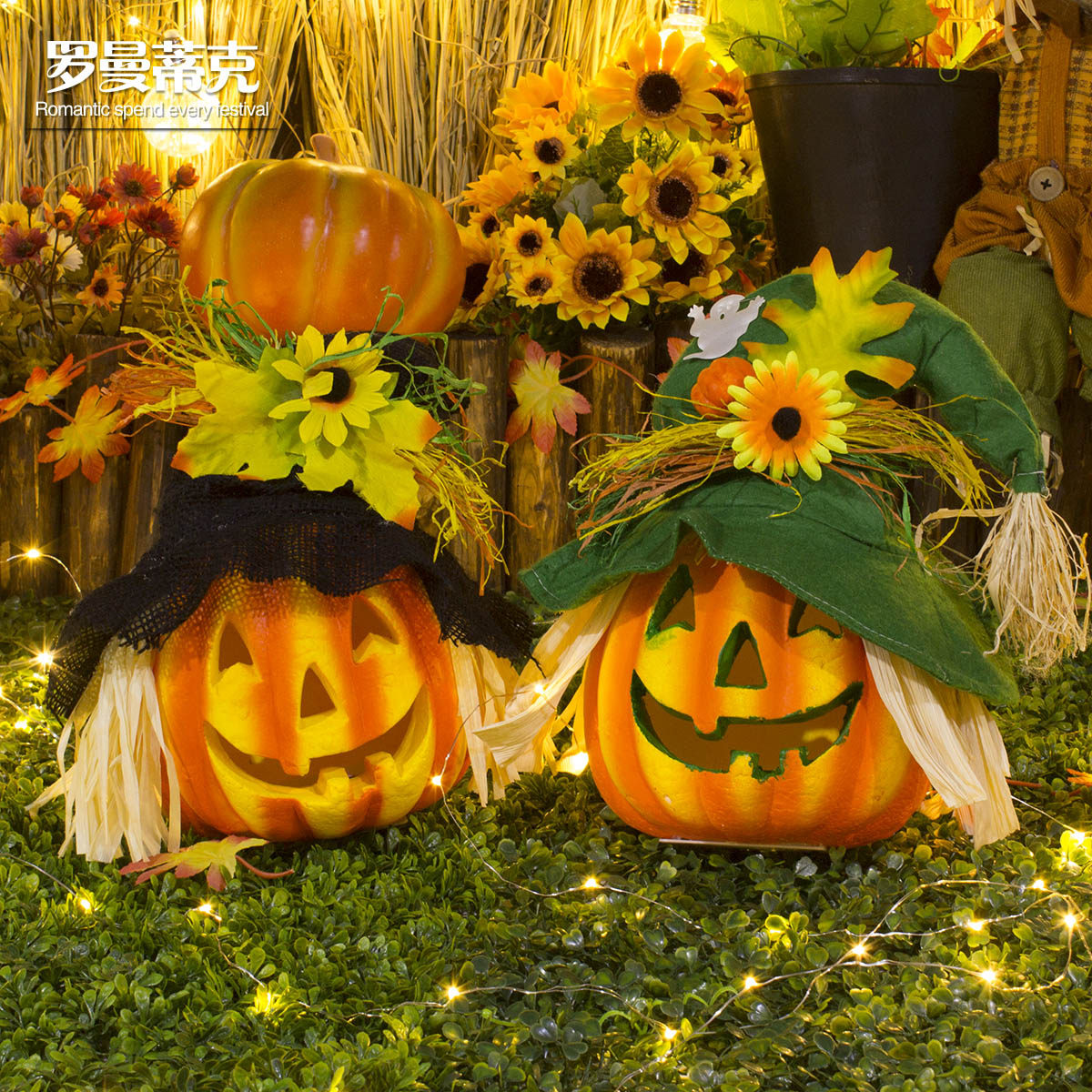 Романтический фонарь с имитацией тыквы, милый светящийся Хэллоуин, украшение для сцены, реквизит, бар, макет торгового центра