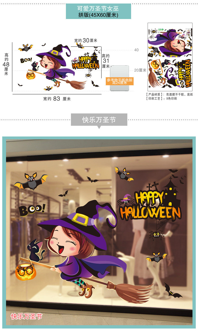 Аксессуар, детский тыквенный фонарь для детского сада, креативные наклейки, стеклянная оконная наклейка, xэллоуин