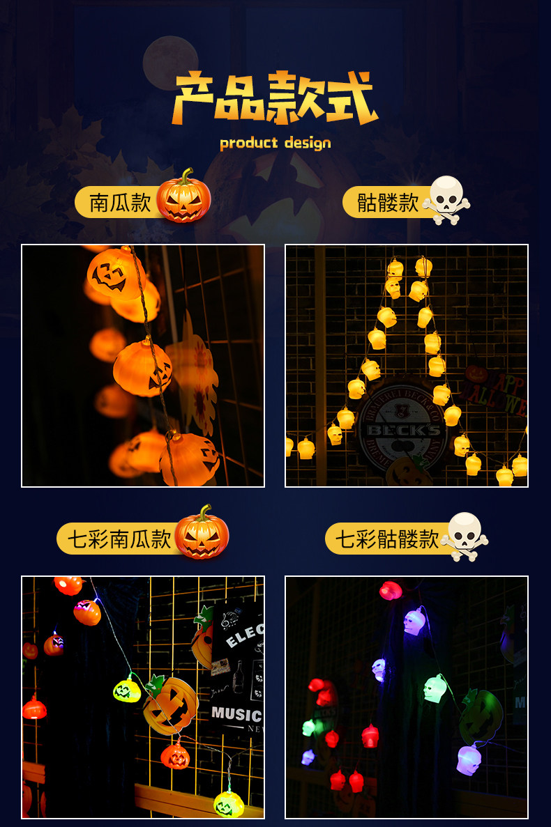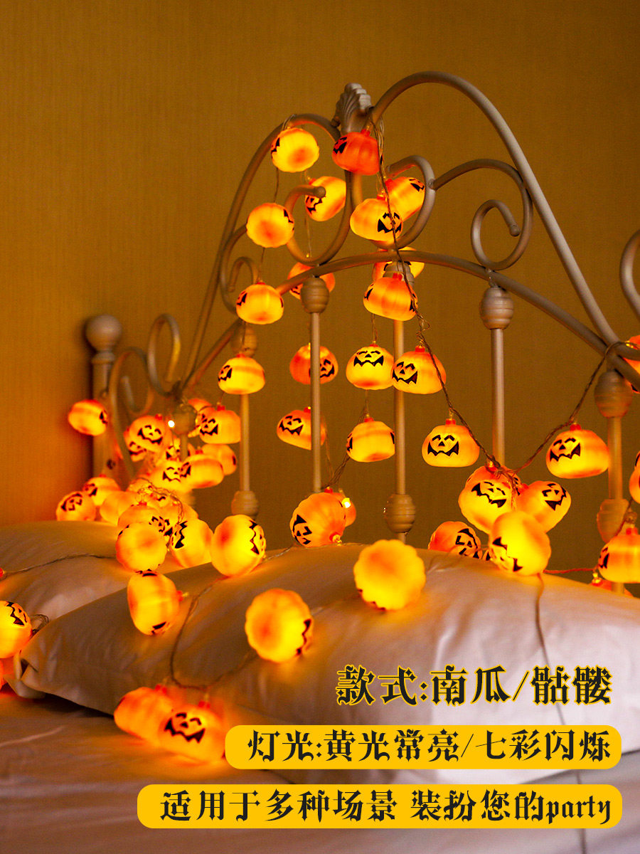 Хэллоуин тыквенный фонарь светодиодный плагин аккумулятор тыква череп строка свет фонарь бар торговый центр праздничные украшения реквизит