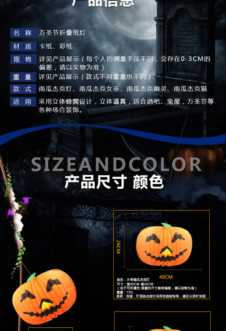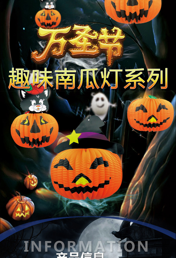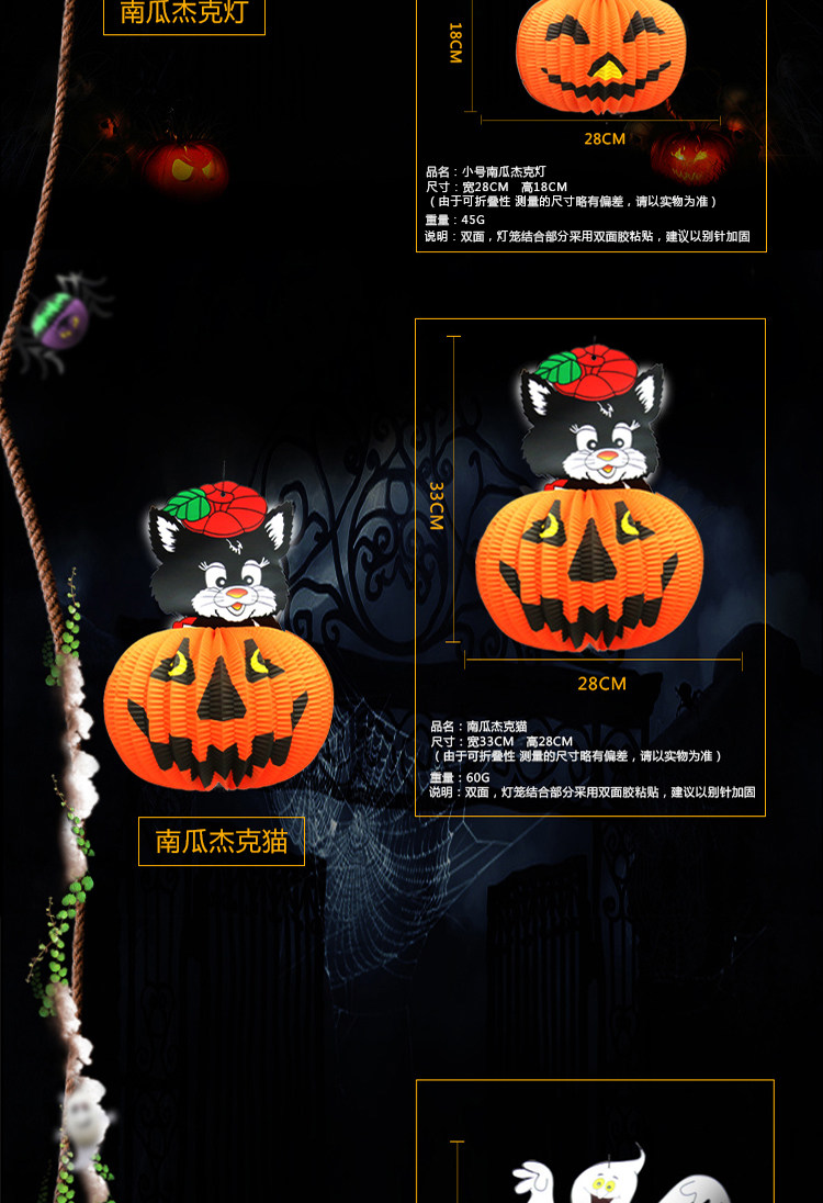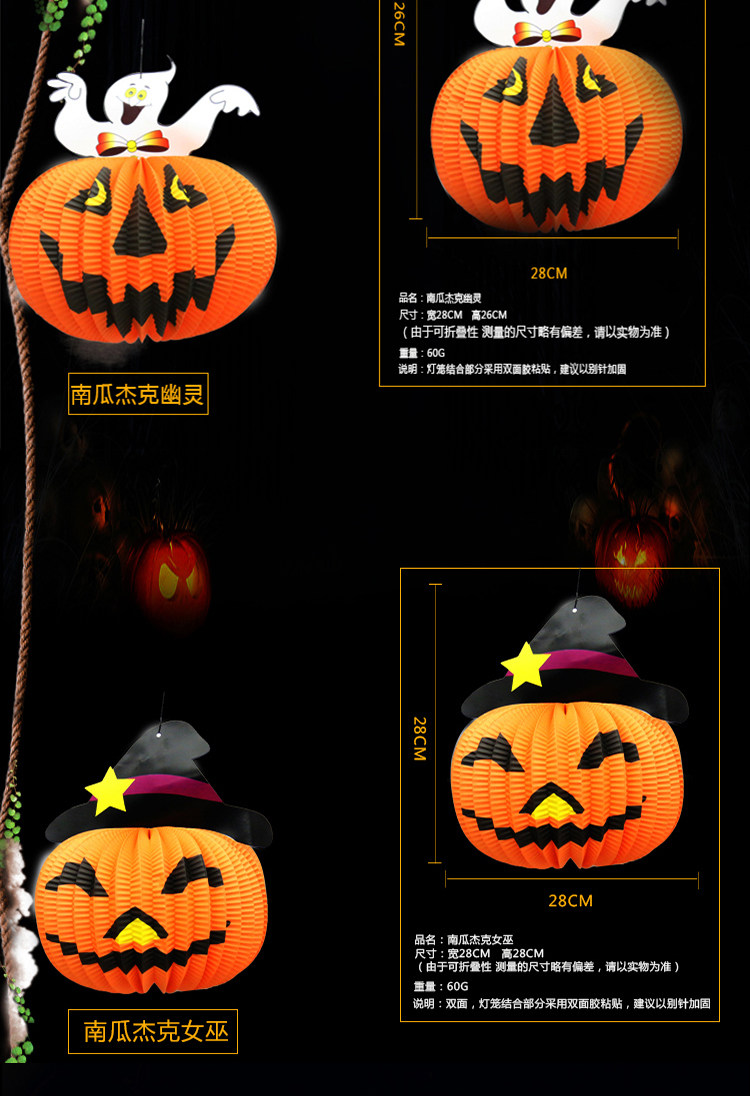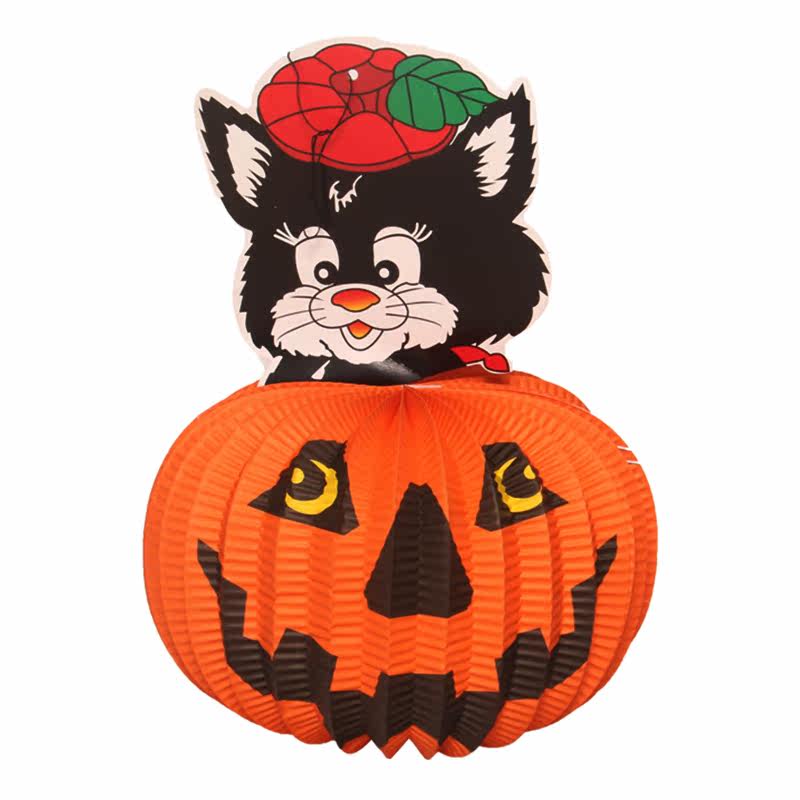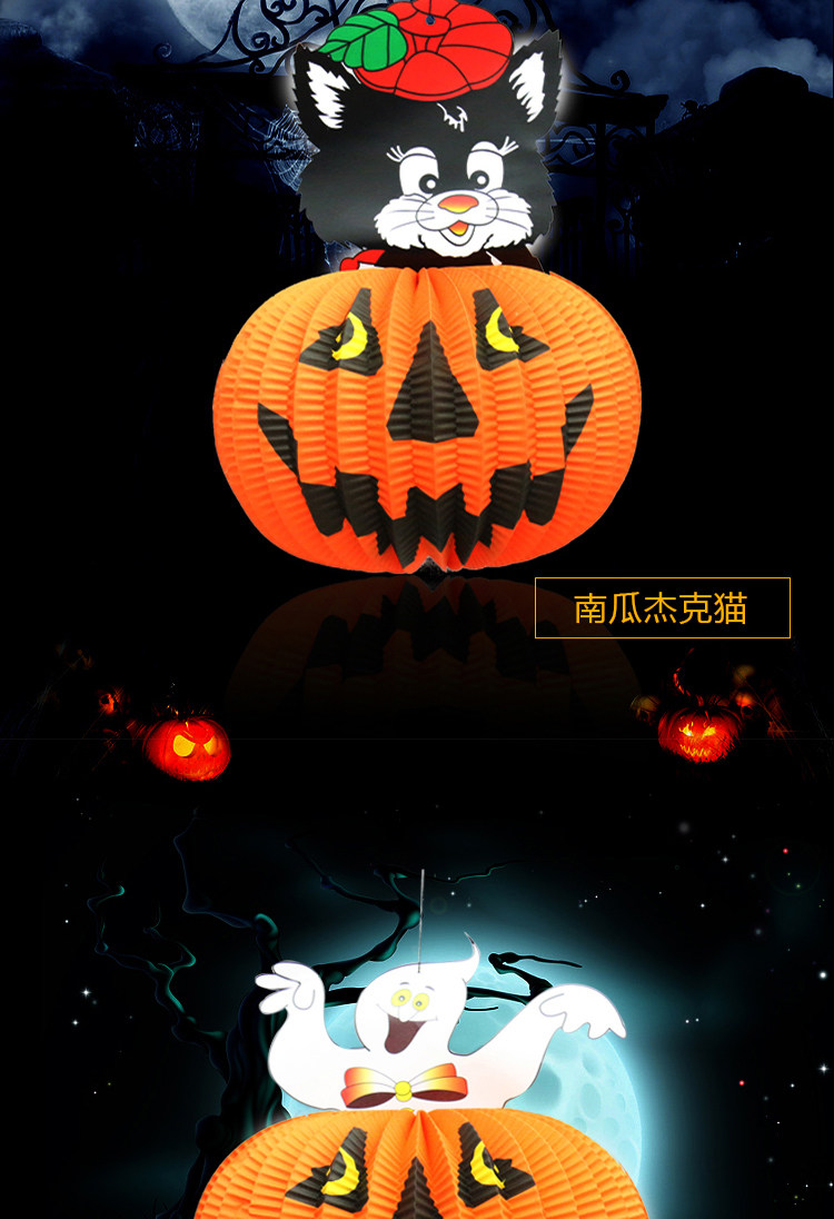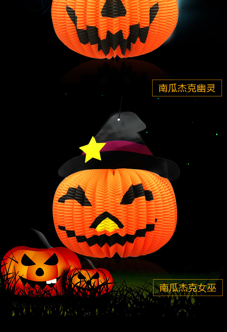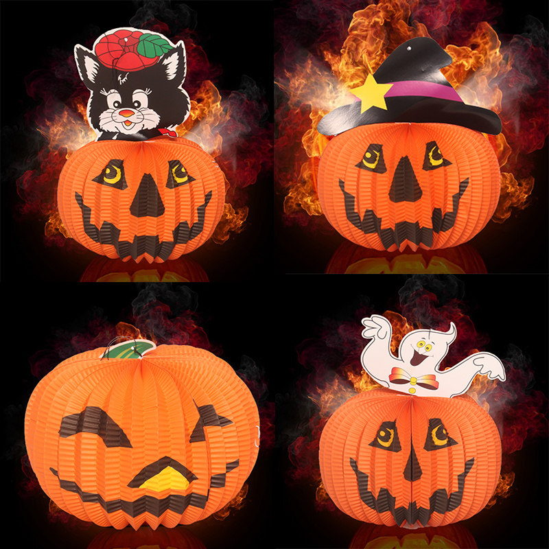 梳宝斋 Товары для украшения Хэллоуина, реквизит, фонарики из тыквы, композиции на Хэллоуин, портативные потолочные бумажные фонарики из тыквы