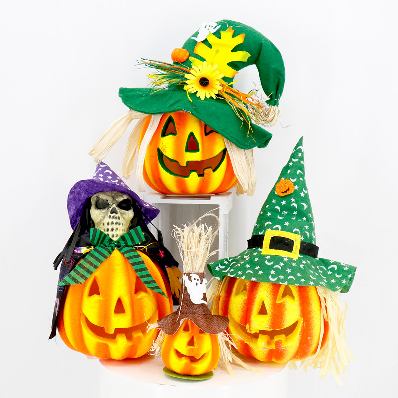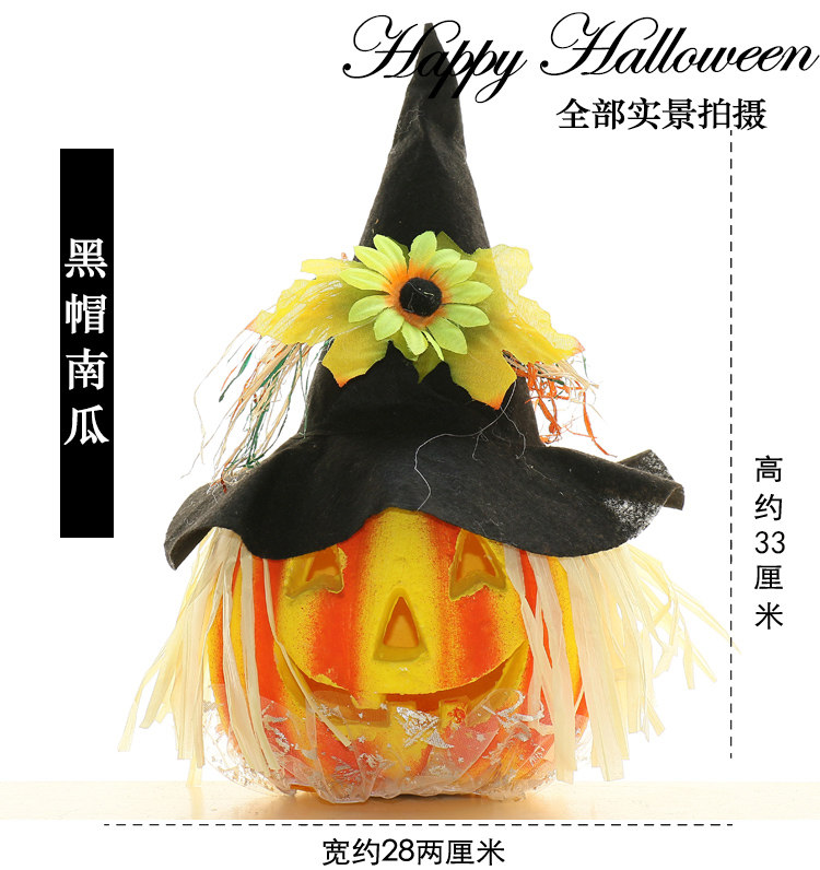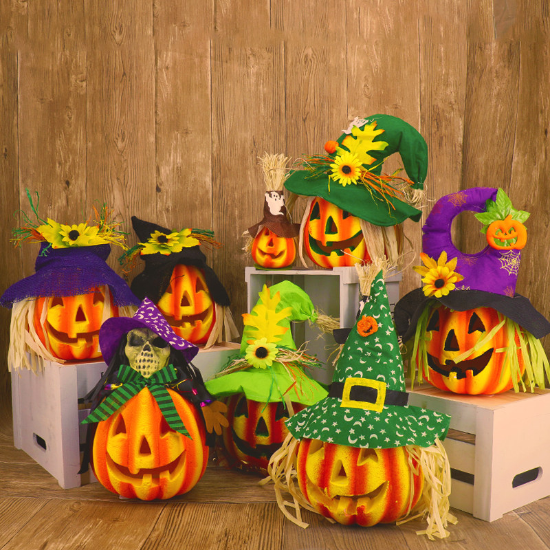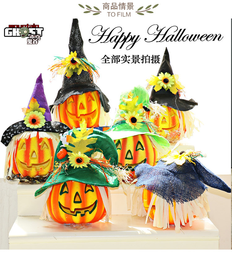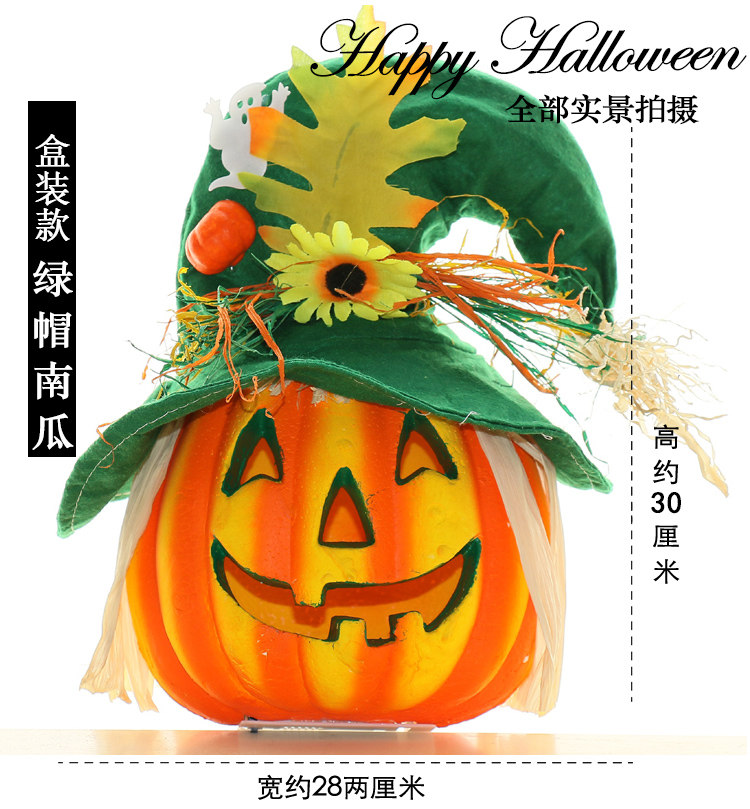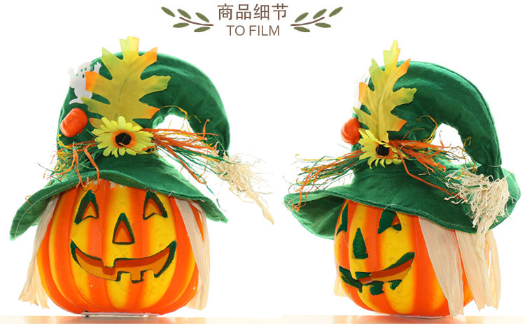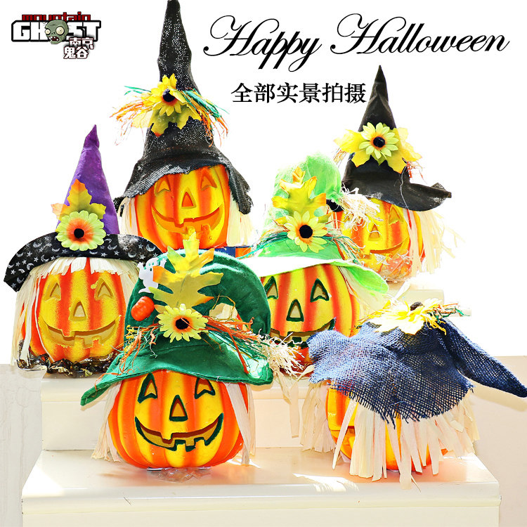 Тыквенный фонарь Хэллоуин украшения продукты торговые центры Мейхен окно -стойку порошковое пудвое светящаяся шляпа тыква реквизит