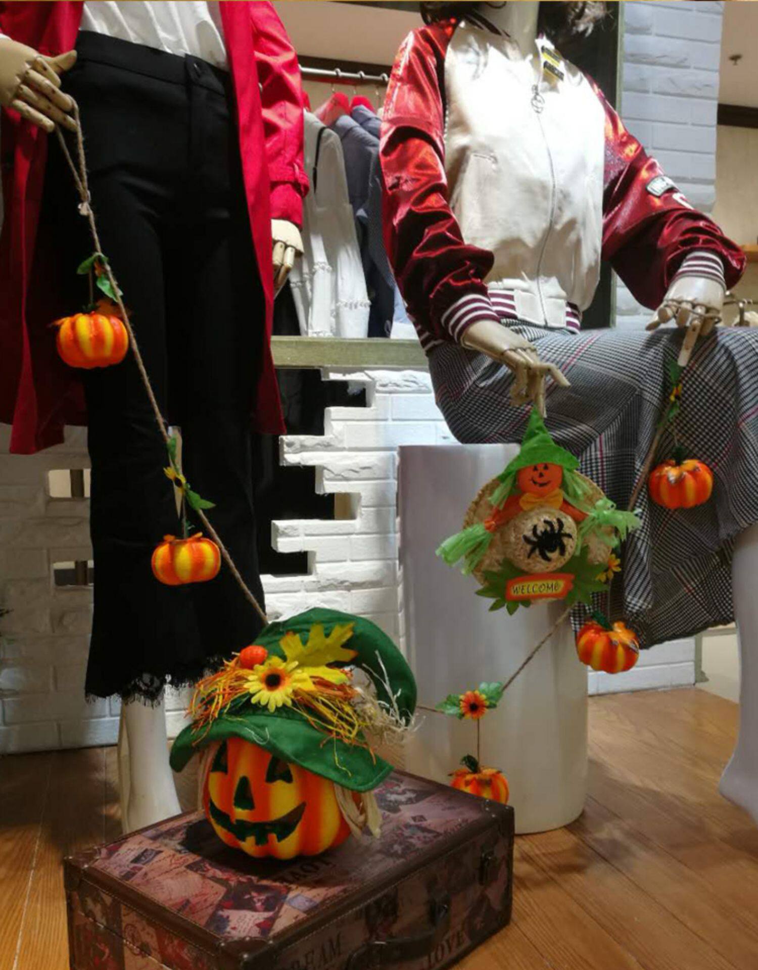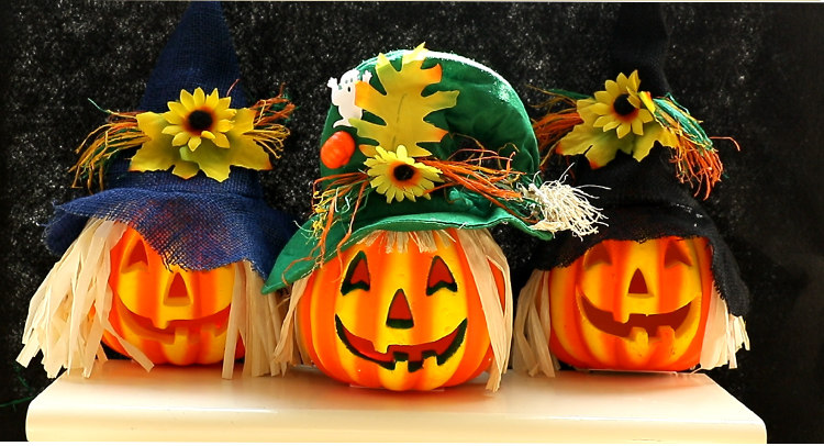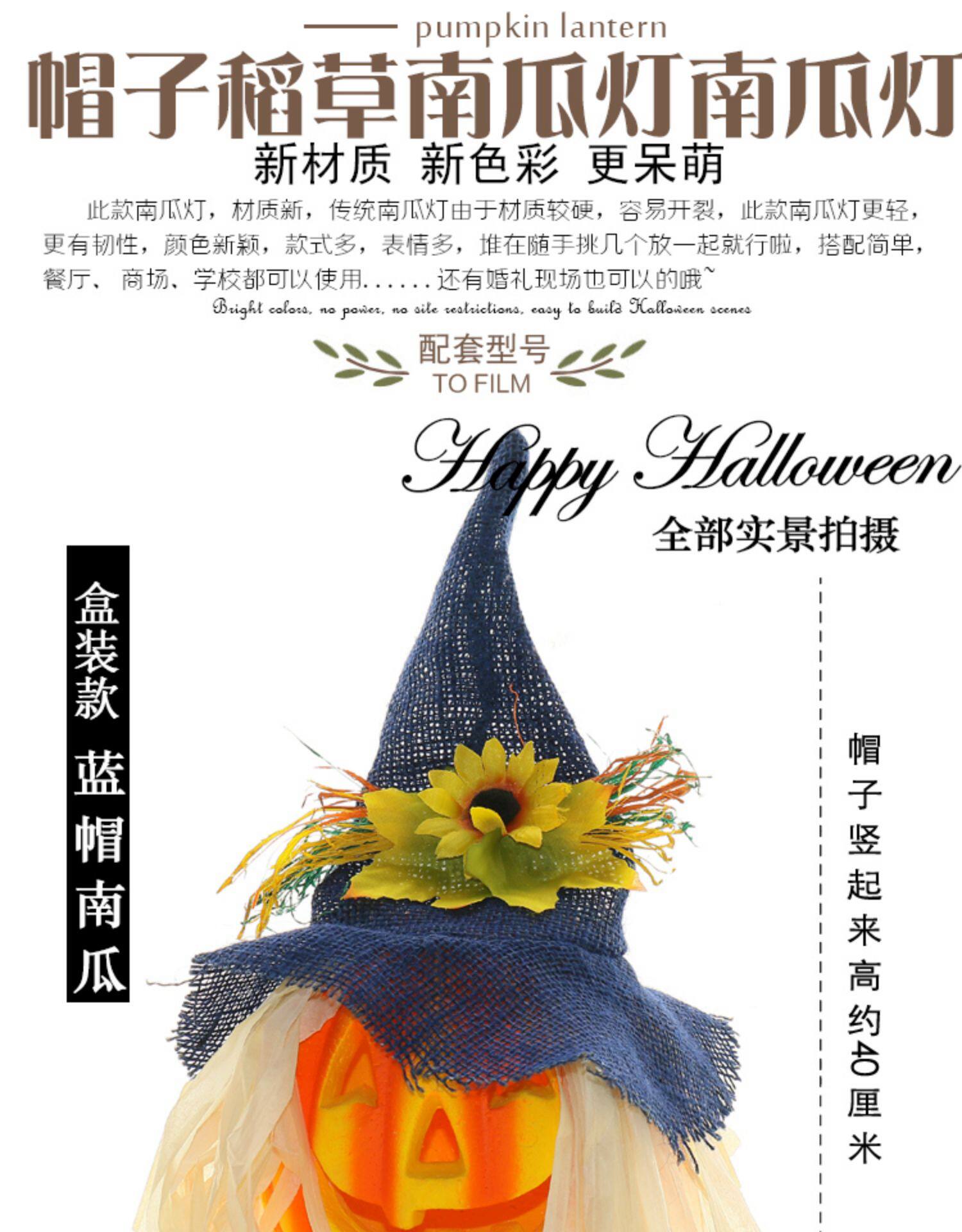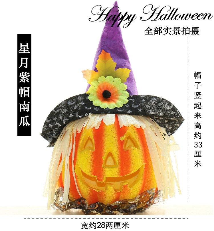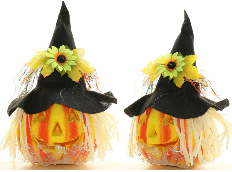Тыквенный фонарь Хэллоуин украшения продукты торговые центры Мейхен окно -стойку порошковое пудвое светящаяся шляпа тыква реквизит