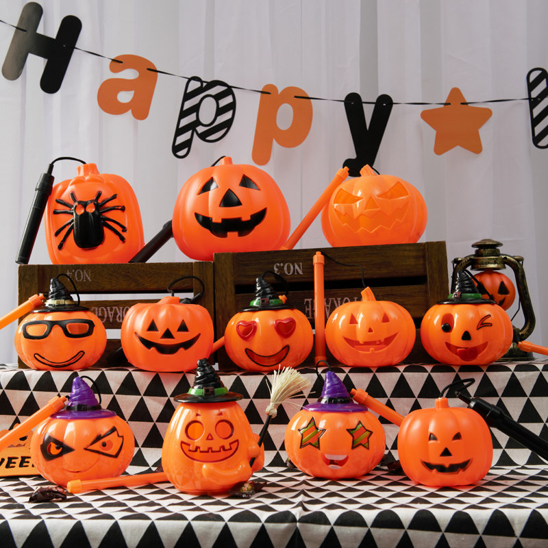 Хэллоуин тыквенный фонарь портативное ведро с тыквой и крышкой банка для конфет детский светоизлучающий светодиодный пластиковый реквизит