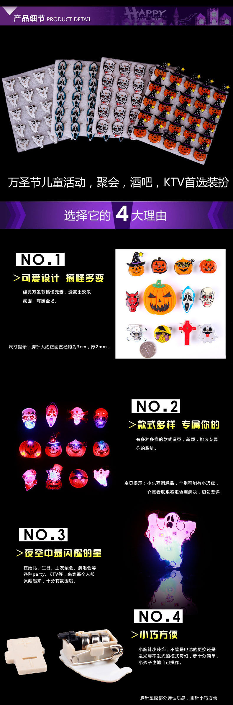 Призрачная брошь, мигающий декор, xэллоуин