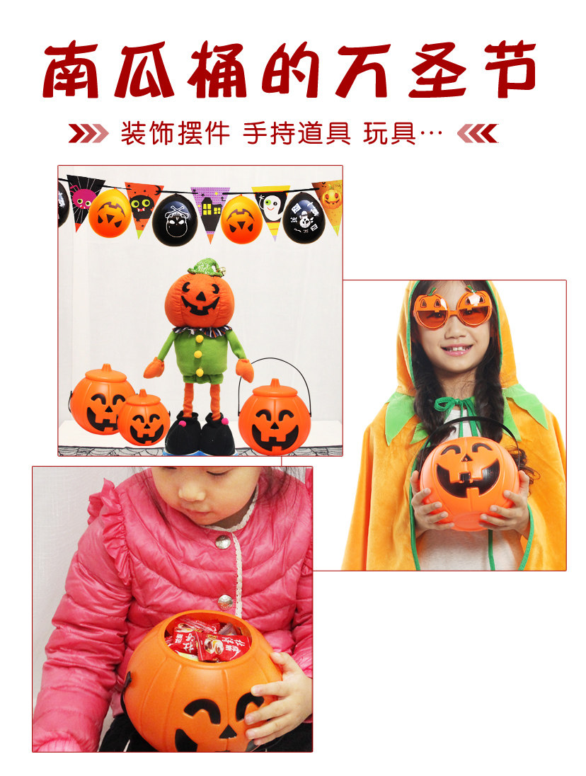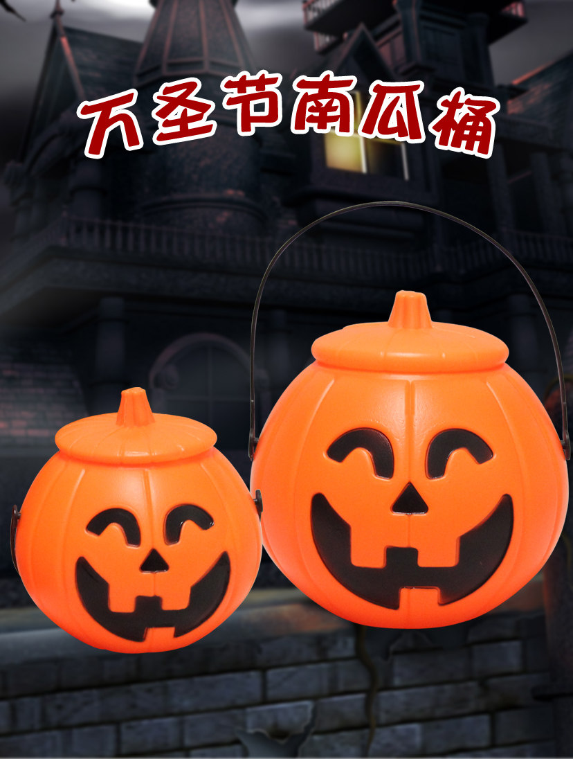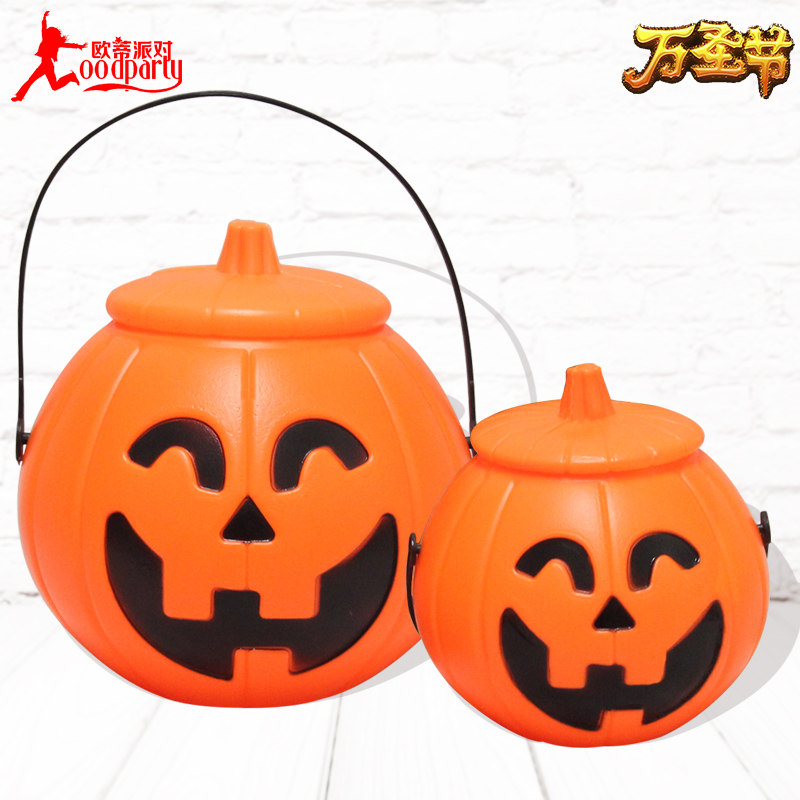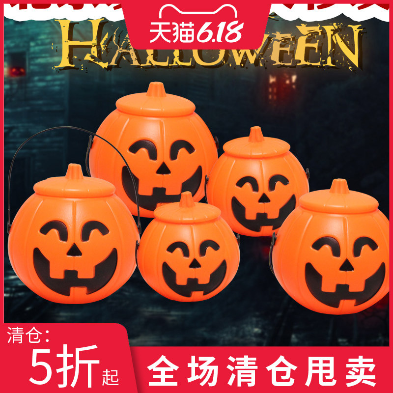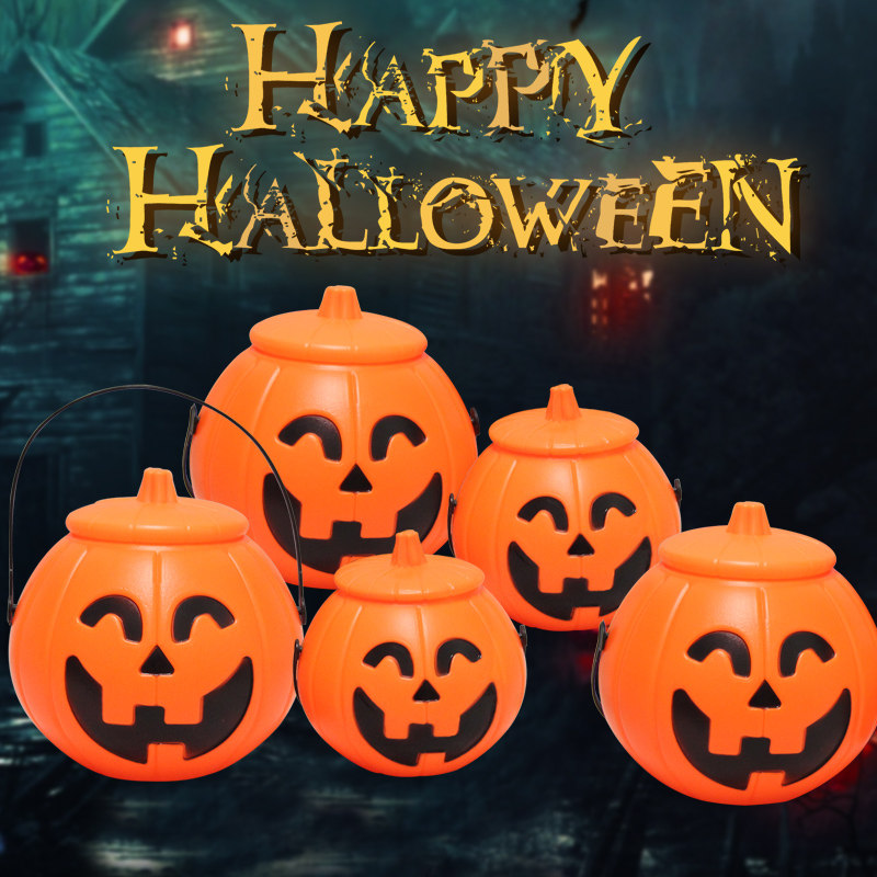 Портативное ведро для тыквы на Хэллоуин с крышкой, реквизит для тыквенного фонаря, декоративные принадлежности, детский светящийся переносной фонарь