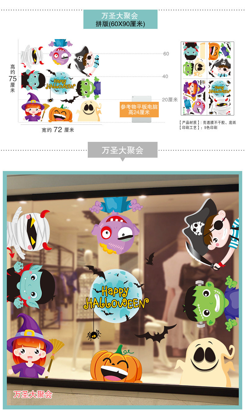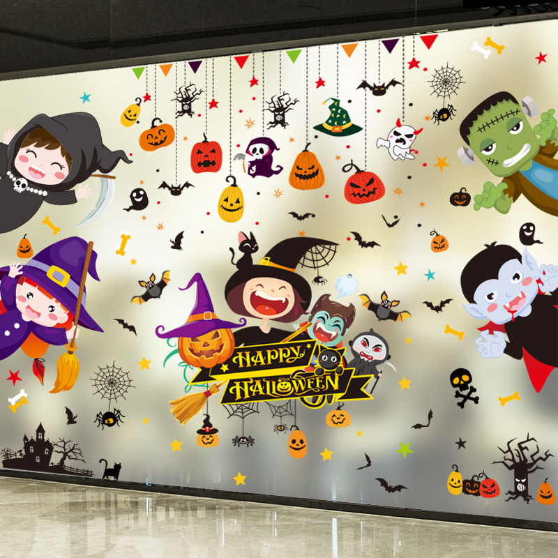 Стеклянная оконная наклейка, подвеска, декор, детский тыквенный фонарь, xэллоуин