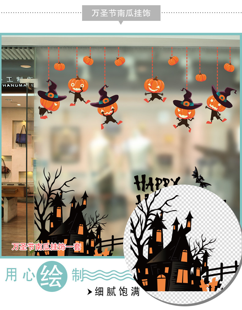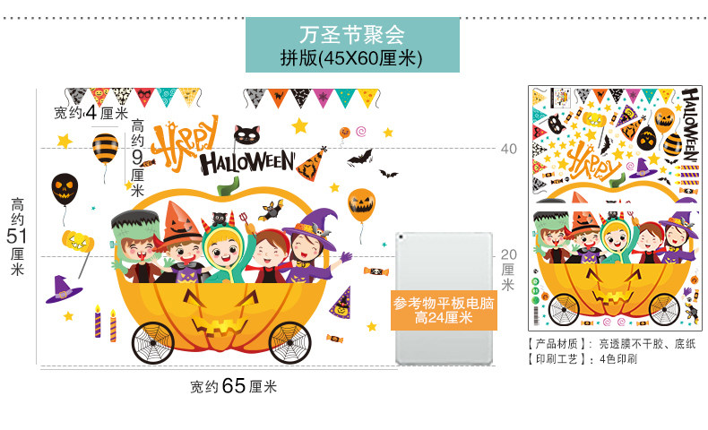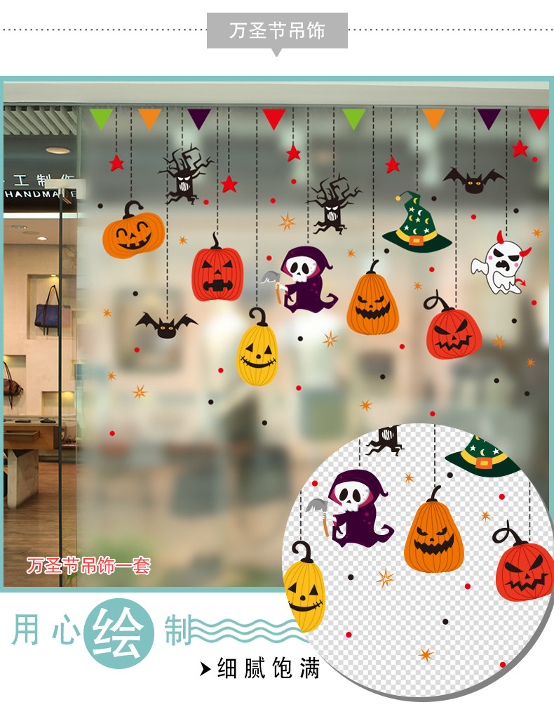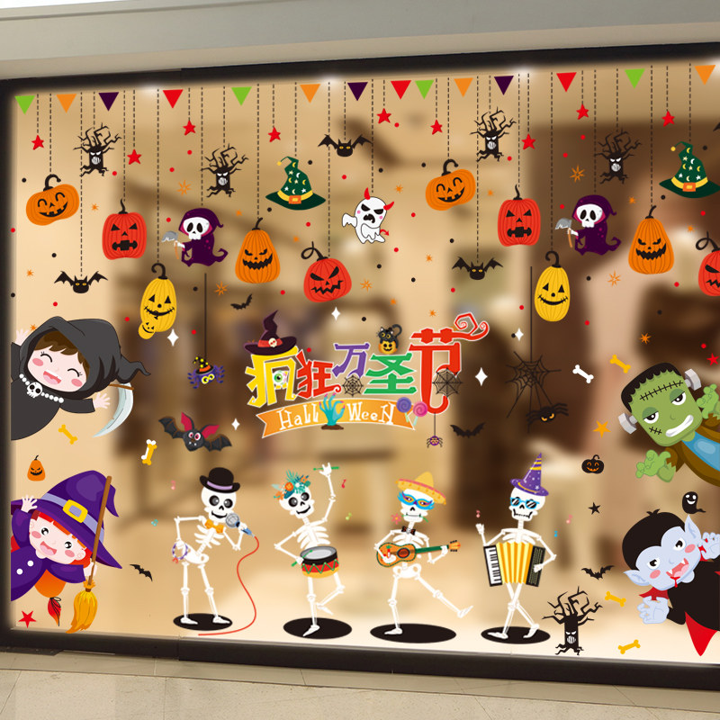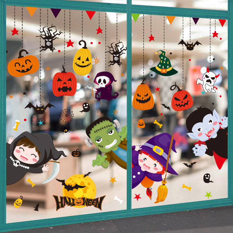 Стеклянный тыквенный фонарь, детский аксессуар, оконная наклейка, xэллоуин, DIY