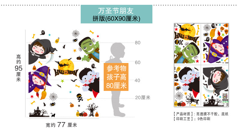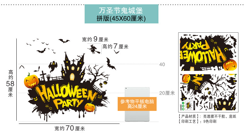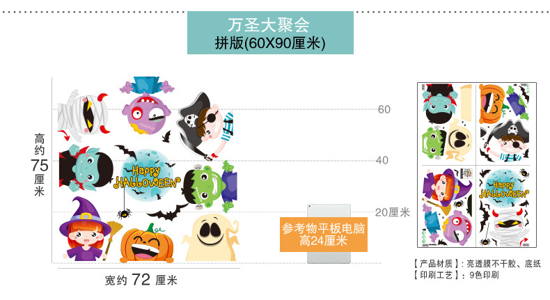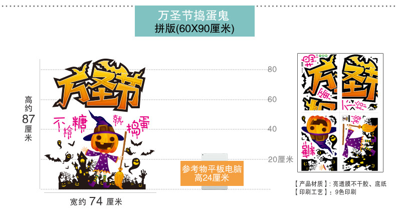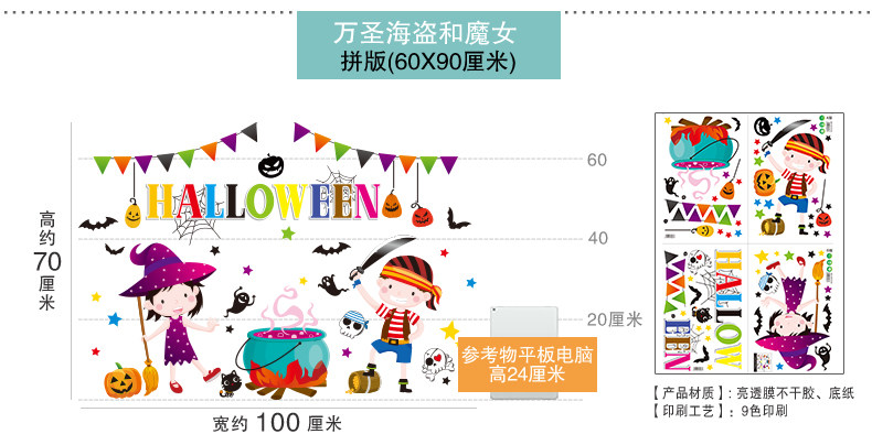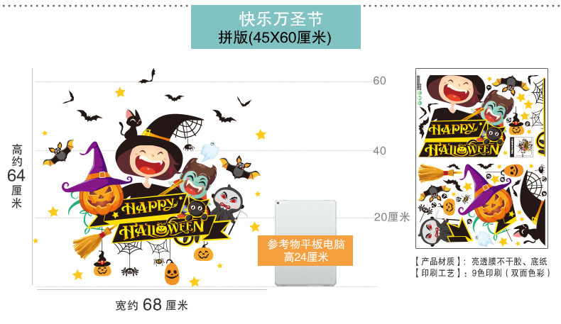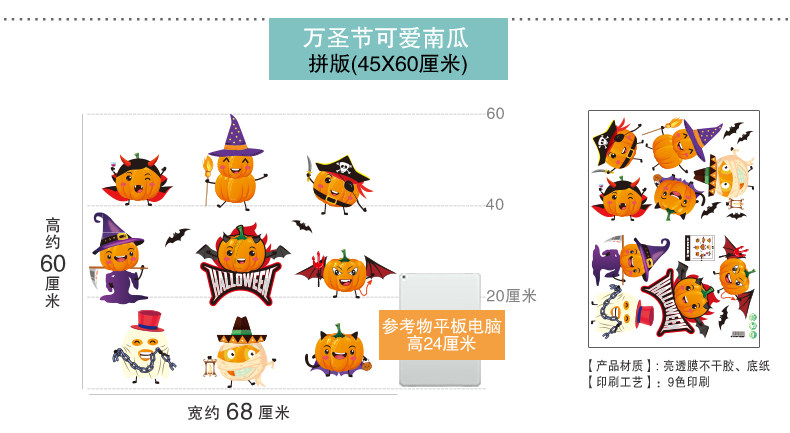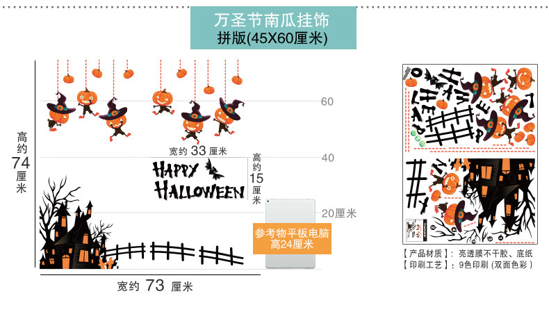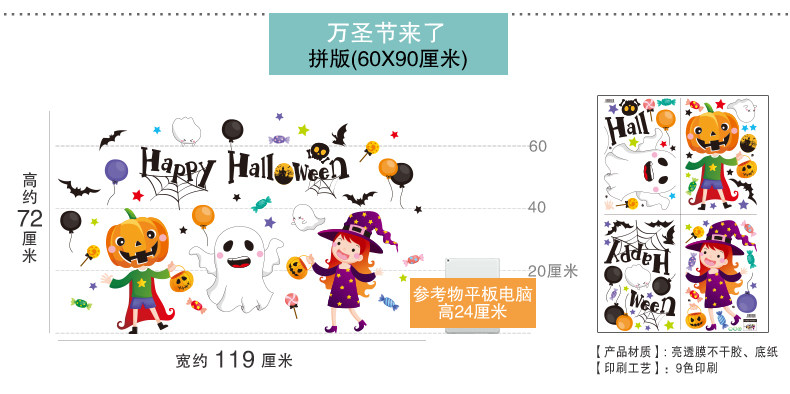 Стеклянный тыквенный фонарь, детский аксессуар, оконная наклейка, xэллоуин, DIY
