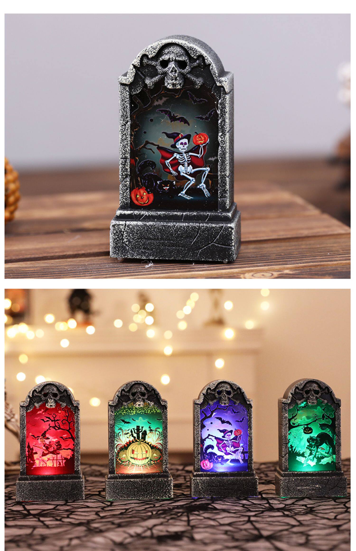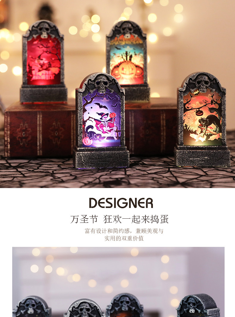 Украшения для бара на Хэллоуин, ветровой фонарь, небольшой надгробный камень, светодиодный макет сцены, имитация бара, световой макет, декоративный реквизит