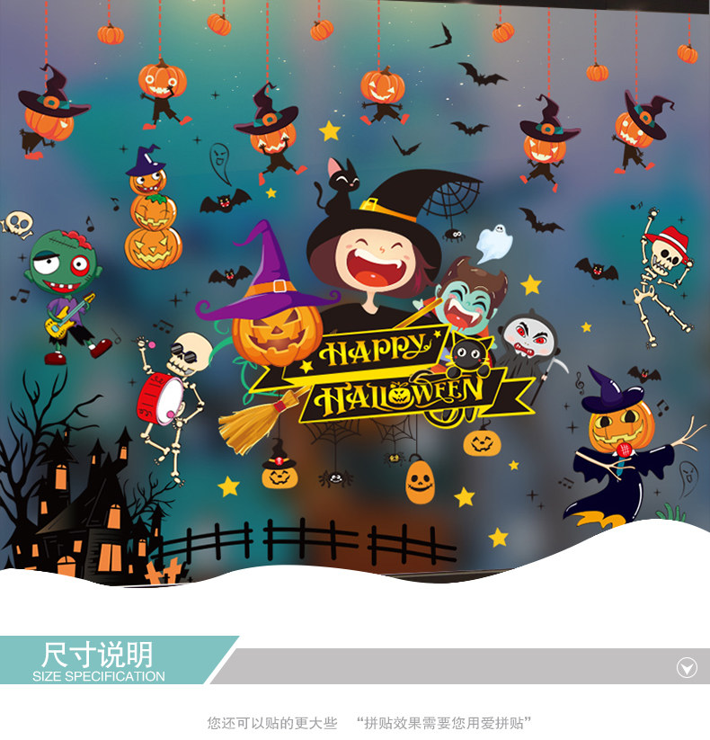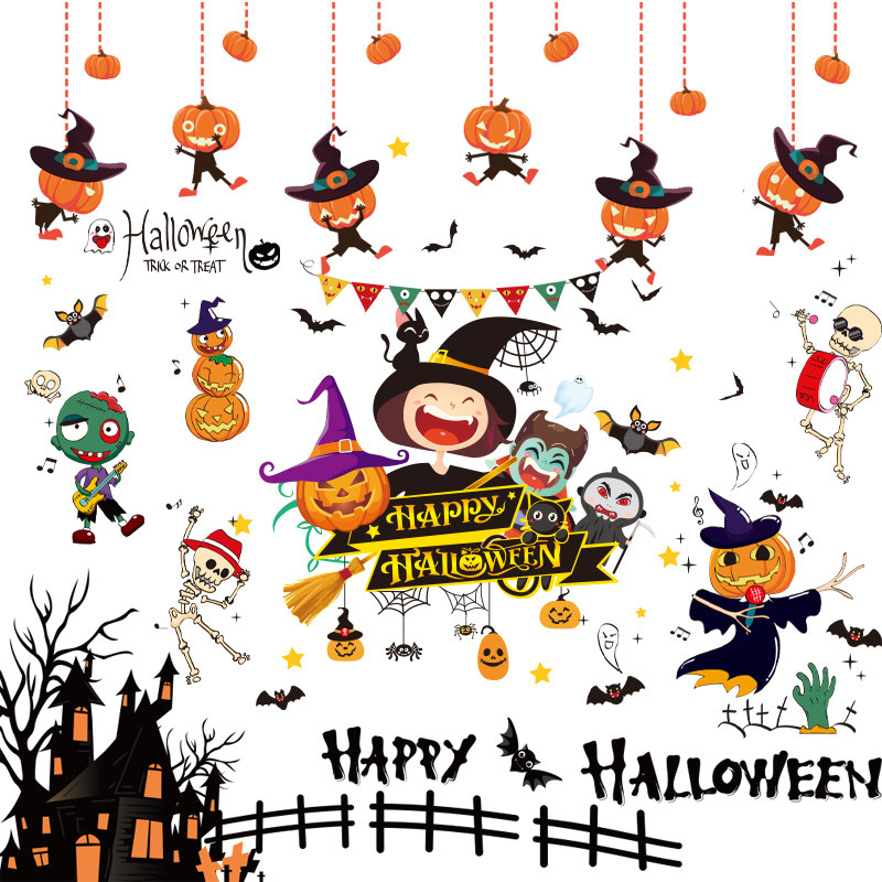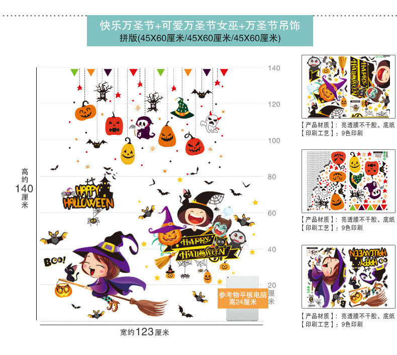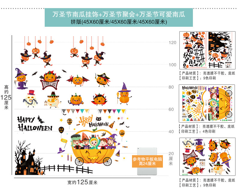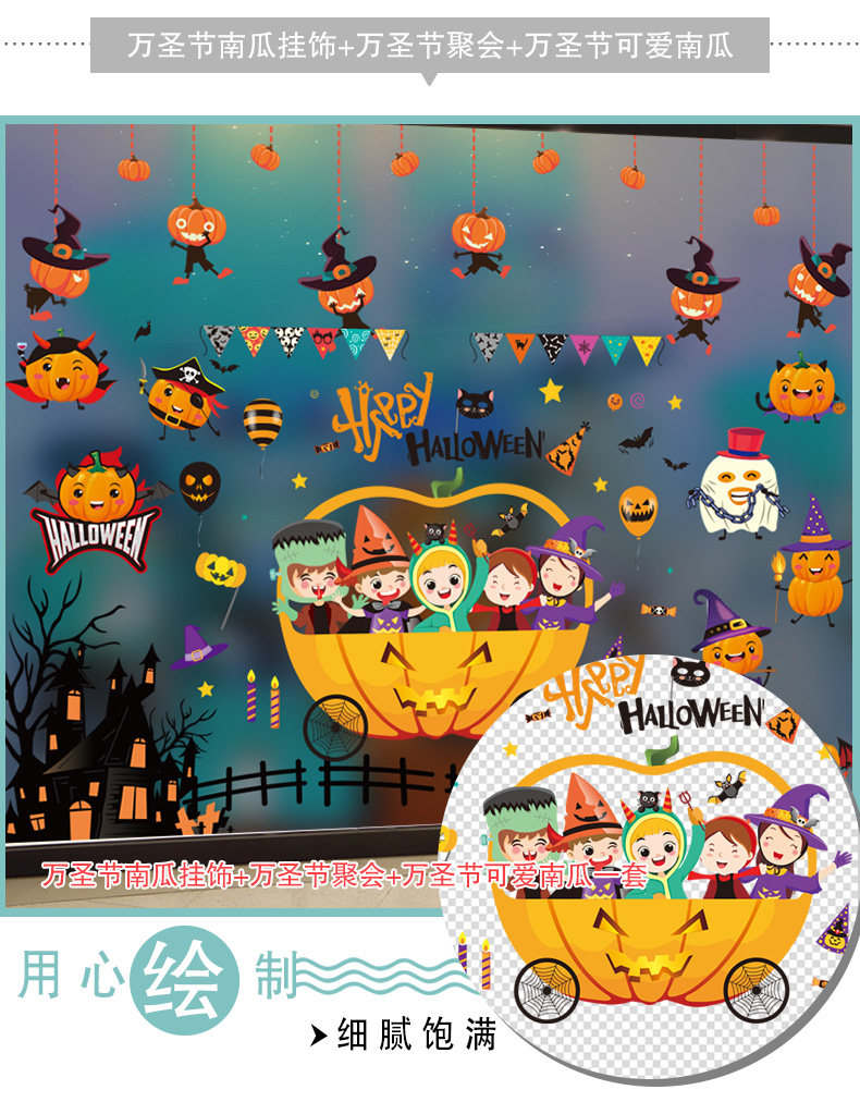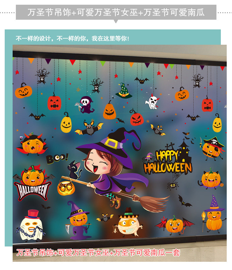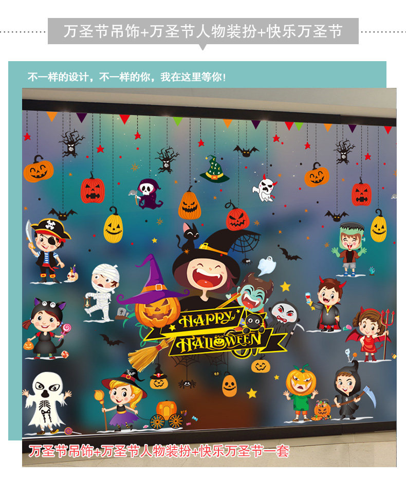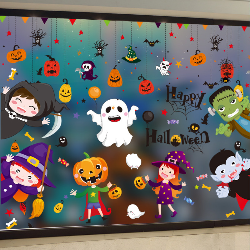 Декор, тыквенный фонарь, стеклянная детская наклейка, игрушка, xэллоуин, DIY