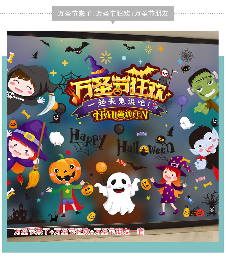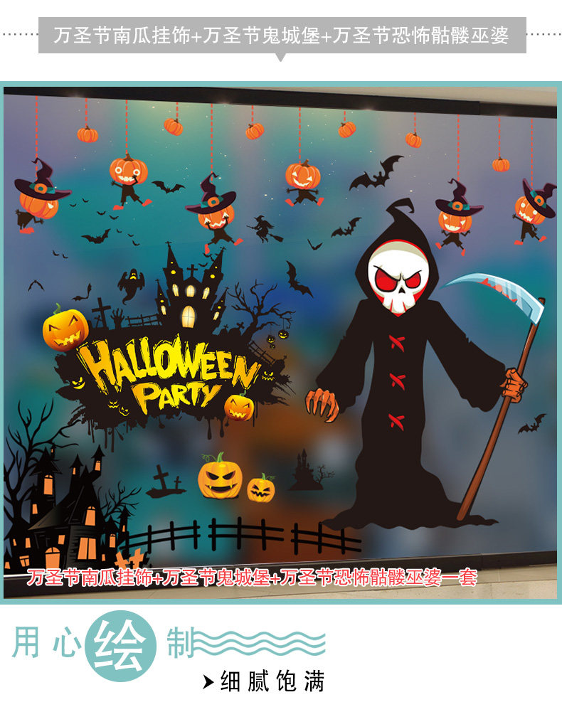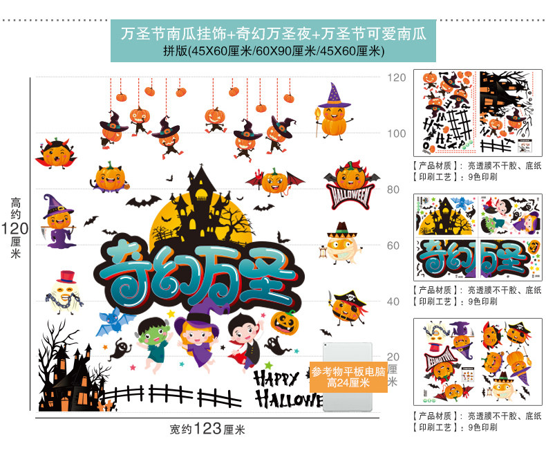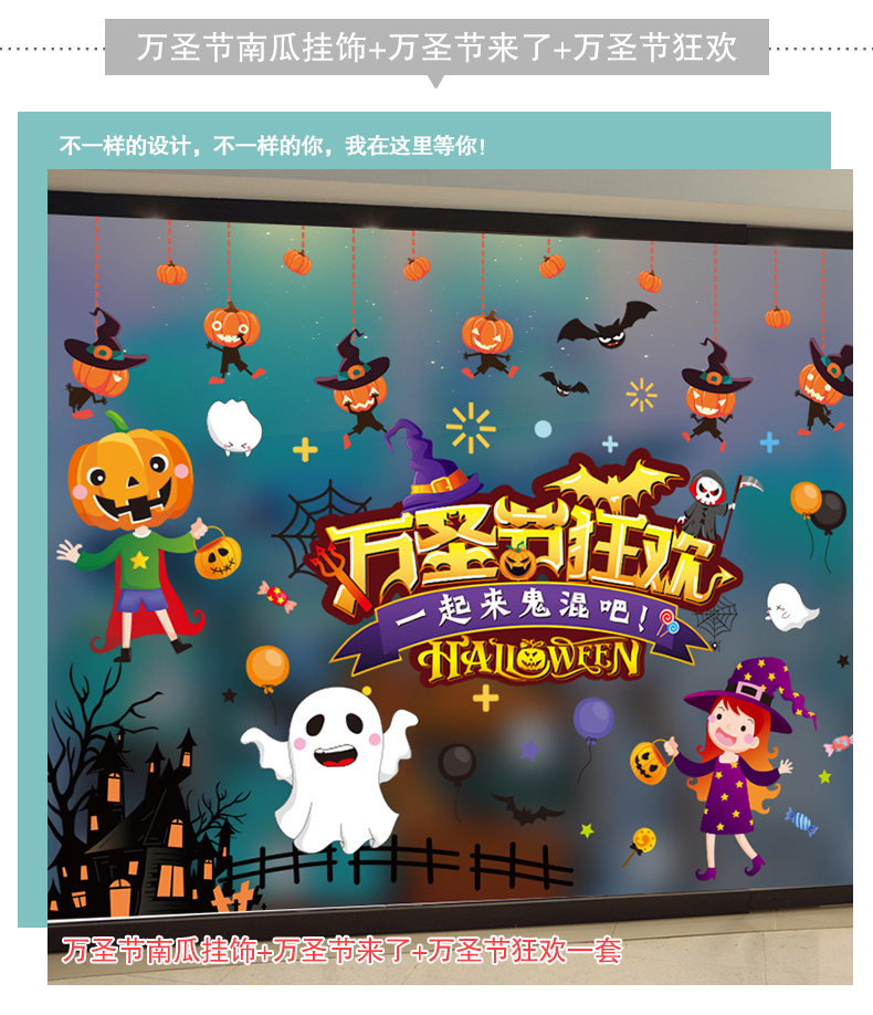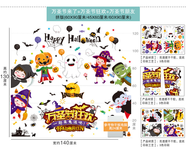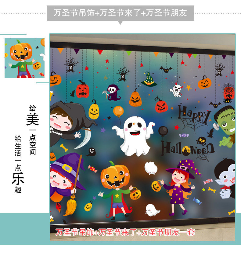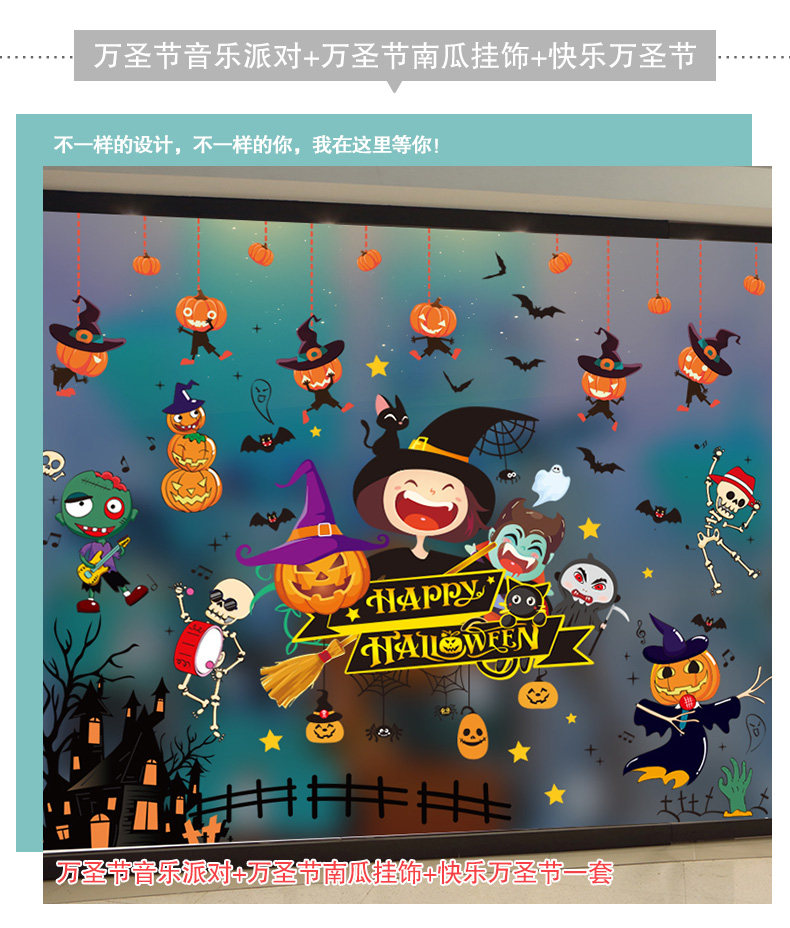 Декор, тыквенный фонарь, стеклянная детская наклейка, игрушка, xэллоуин, DIY