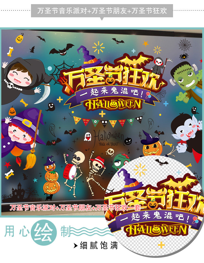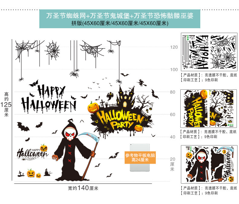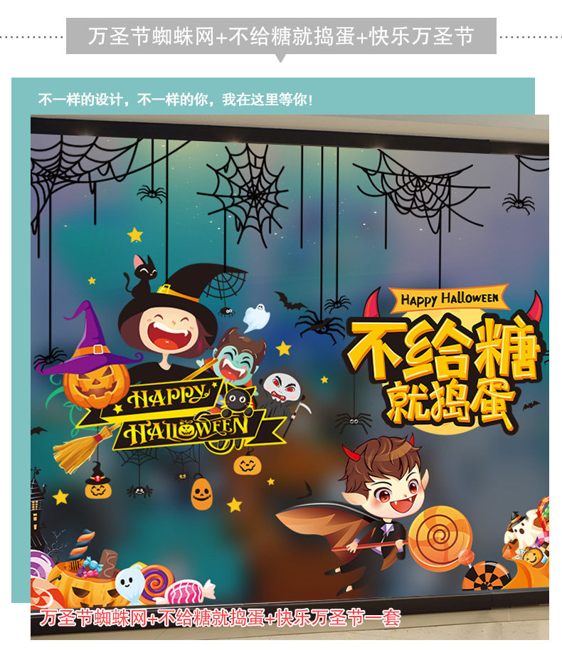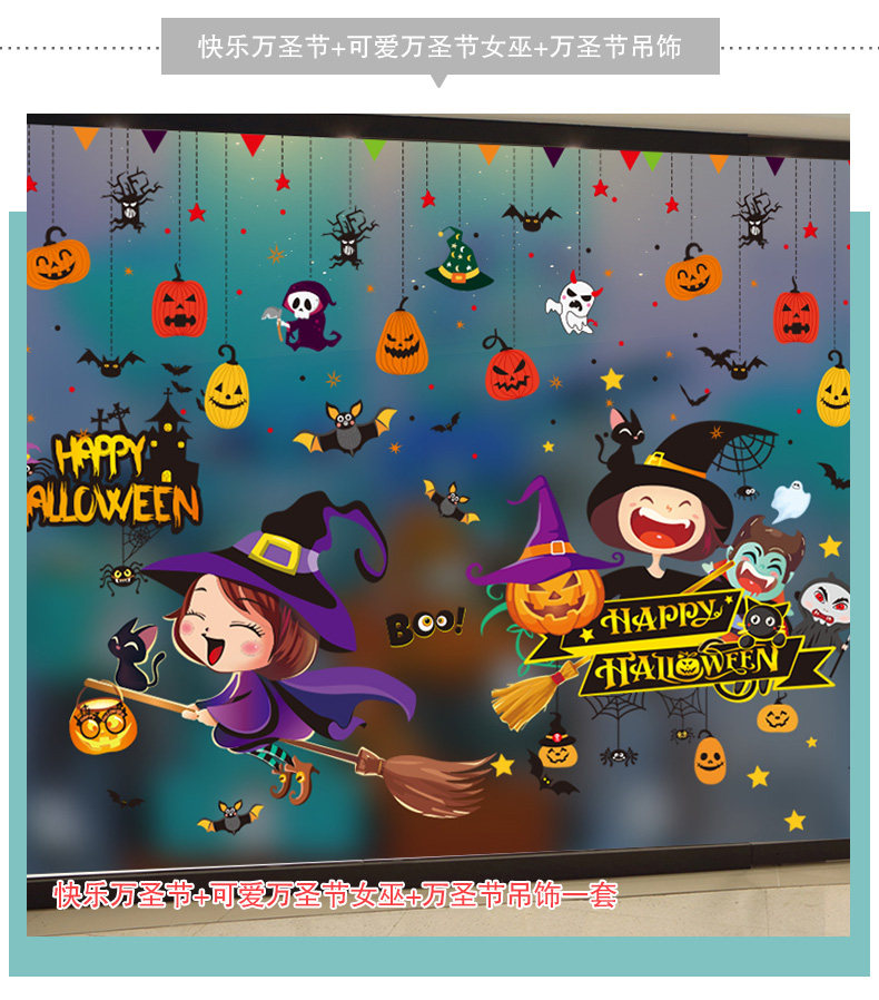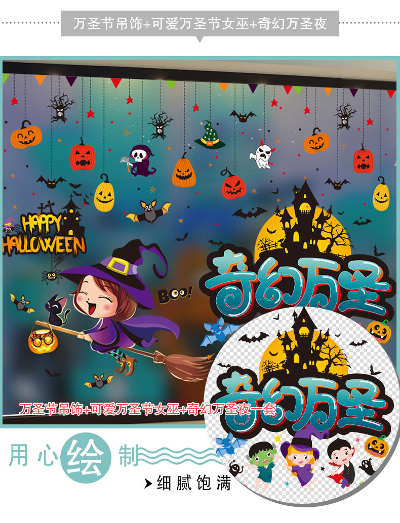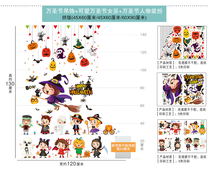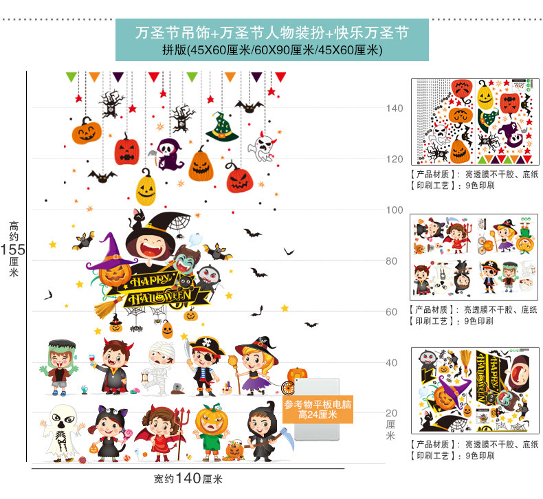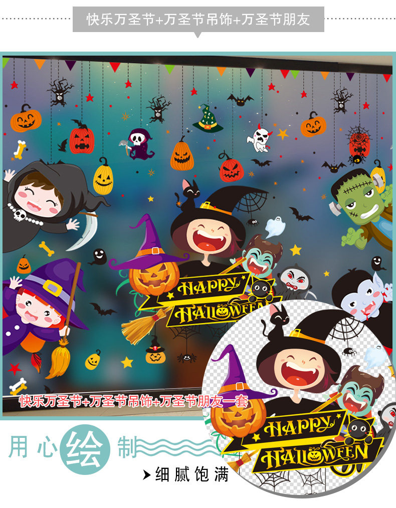 Декор, тыквенный фонарь, стеклянная детская наклейка, игрушка, xэллоуин, DIY
