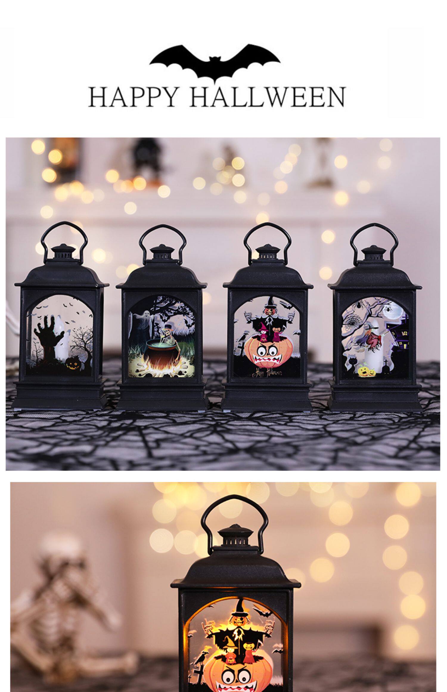 Череп Хэллоуин Небольшое плоское свет, тыквенная лампа, маленькая масляная лампа, призрак -фестиваль призрак, домик ktv window