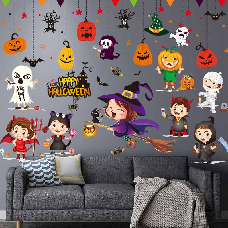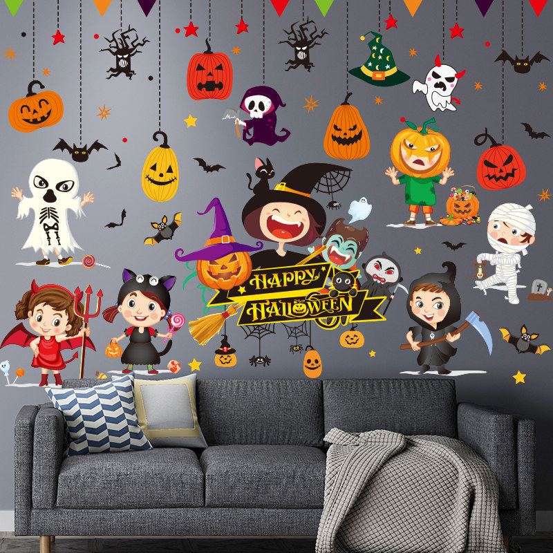 Тыквенный фонарь, декор, детская стеклянная оконная наклейка, xэллоуин