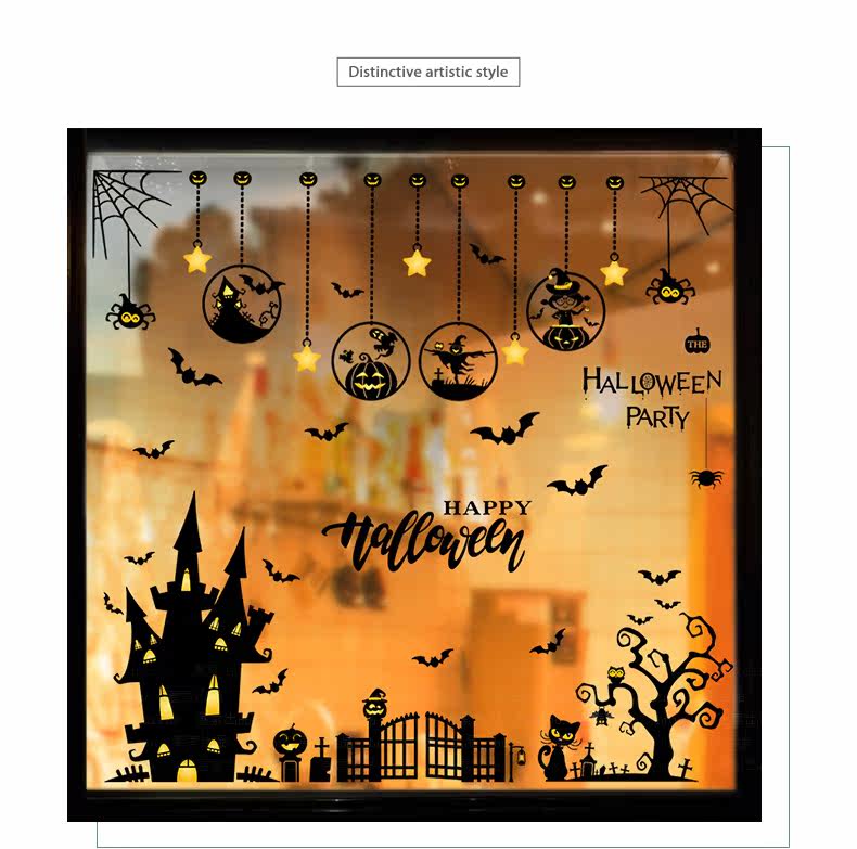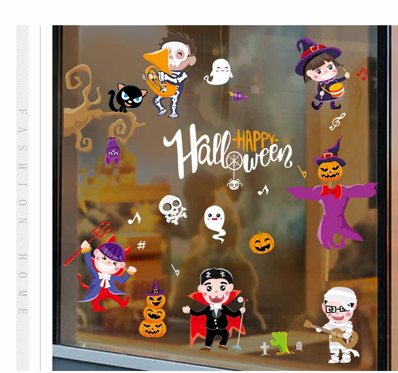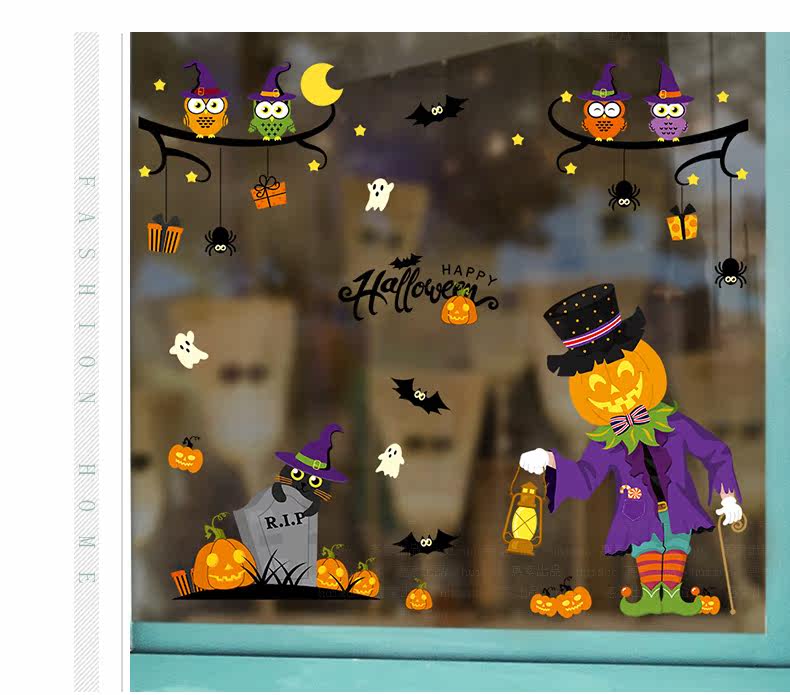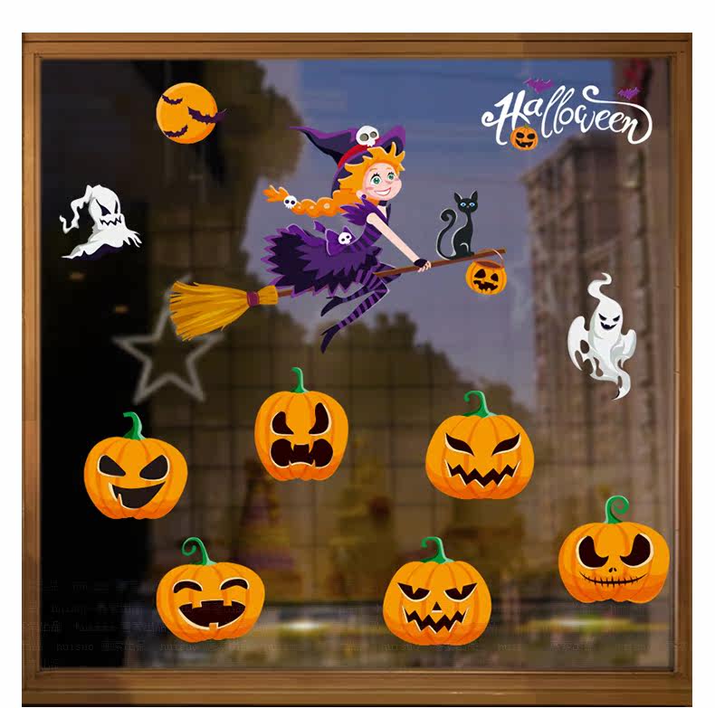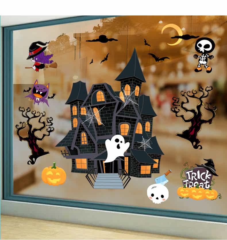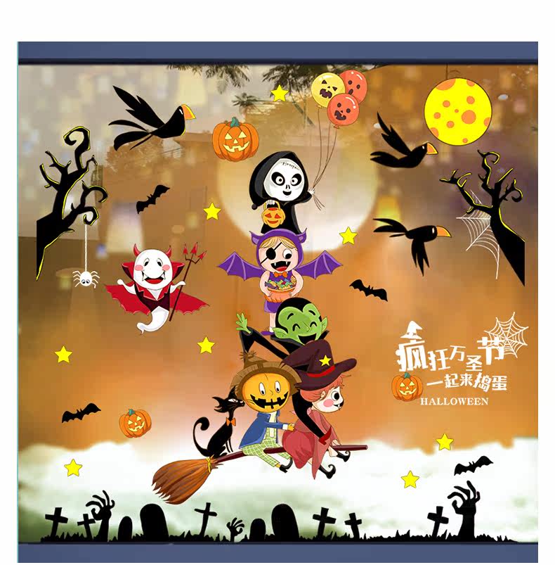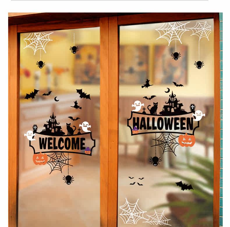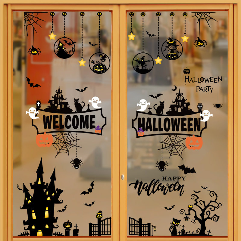 Самоклеющаяся съемная стеклянная оконная наклейка на стену, наклейки, xэллоуин