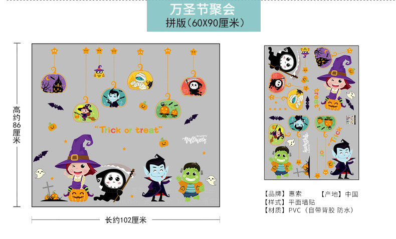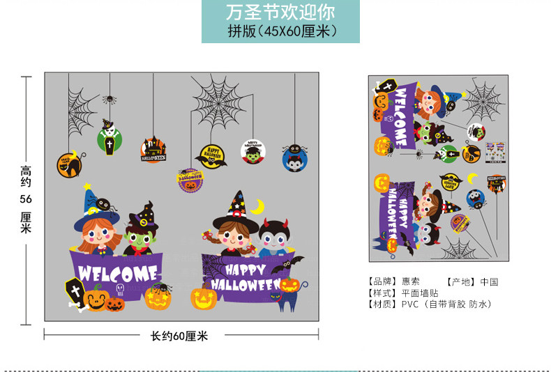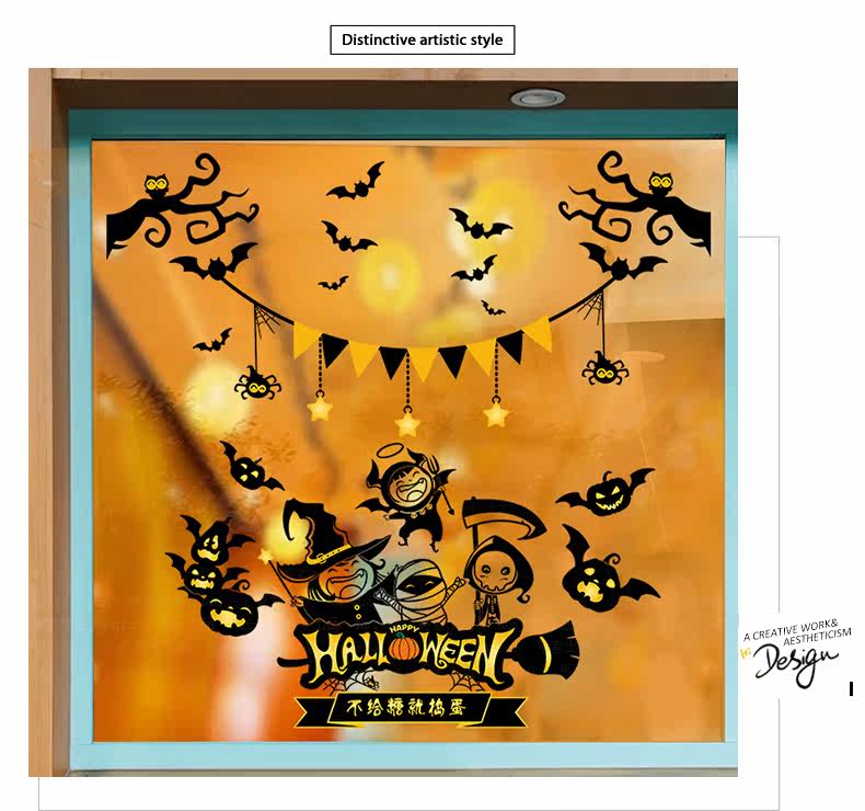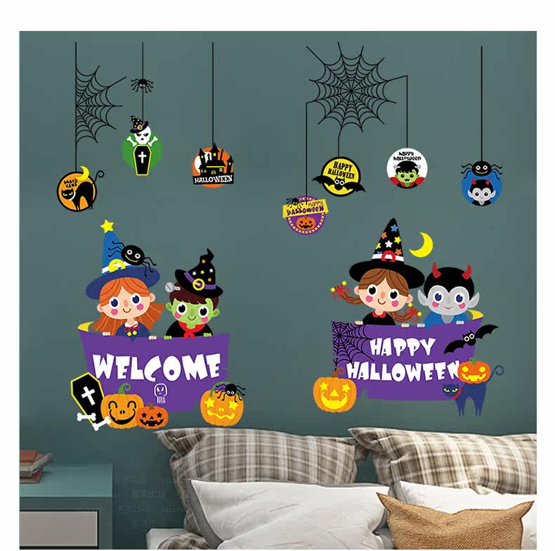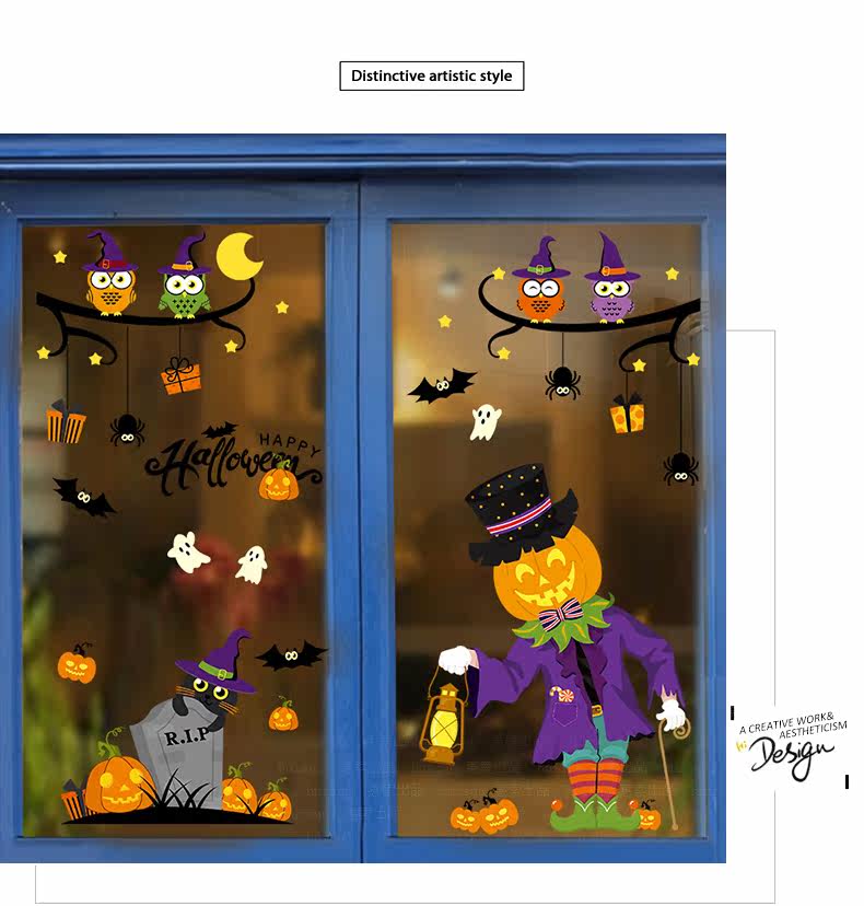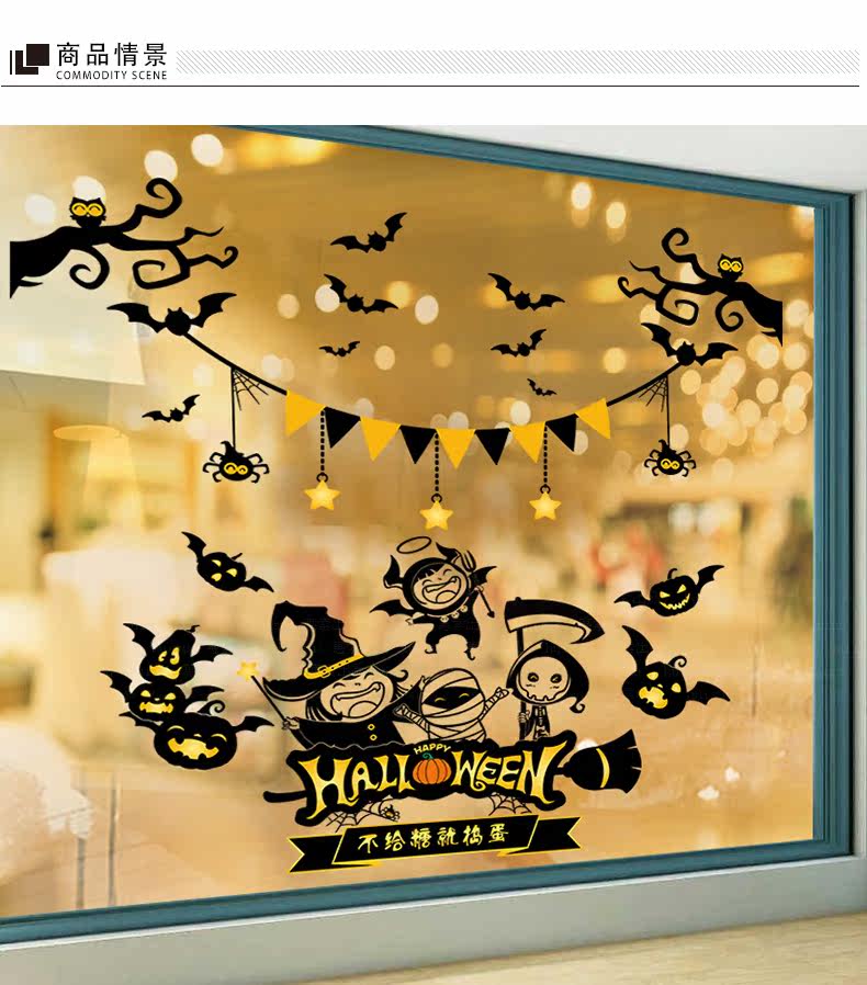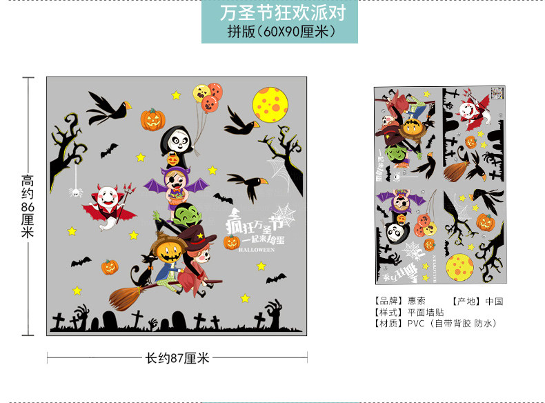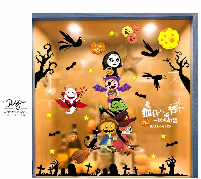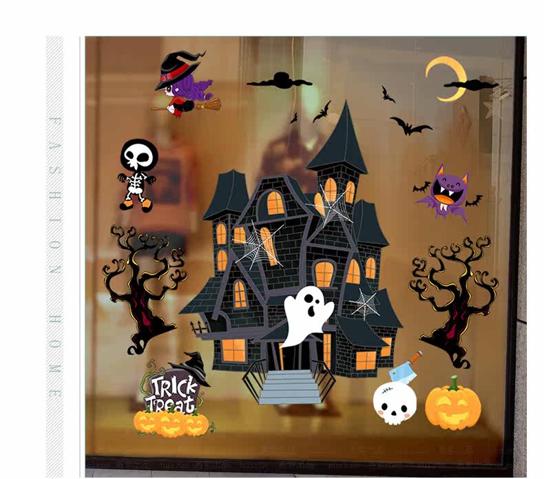 Самоклеющаяся съемная стеклянная оконная наклейка на стену, наклейки, xэллоуин