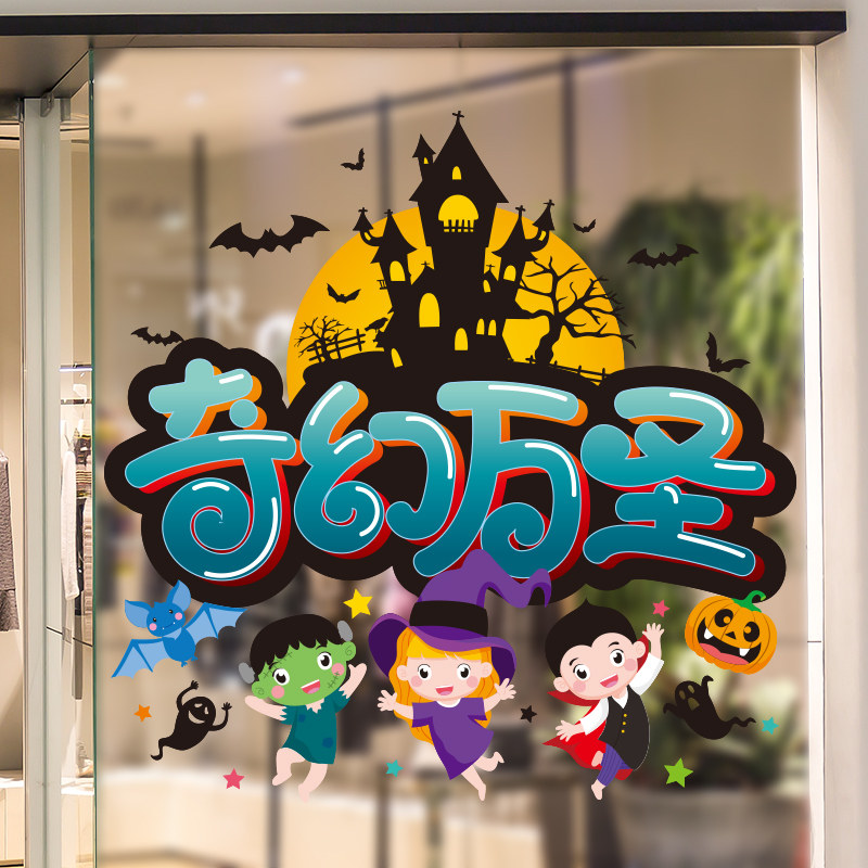 Стеклянный декор, детский тыквенный фонарь для детского сада, оконная наклейка, xэллоуин